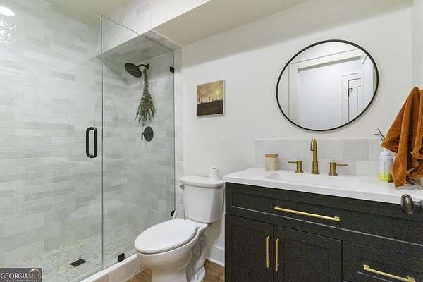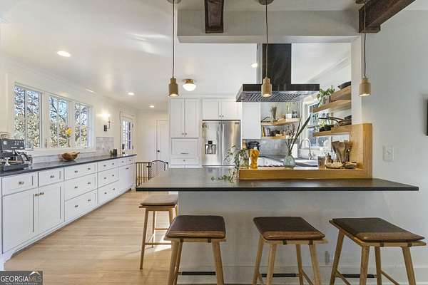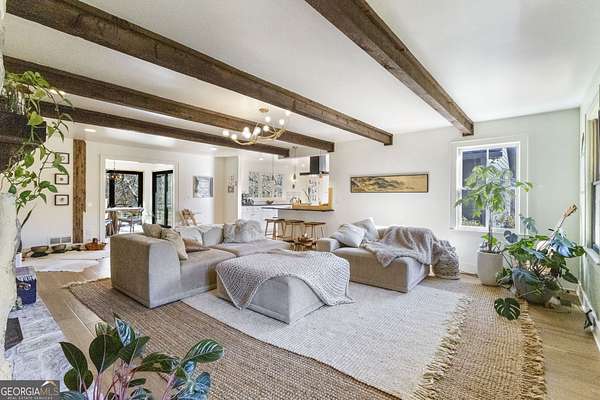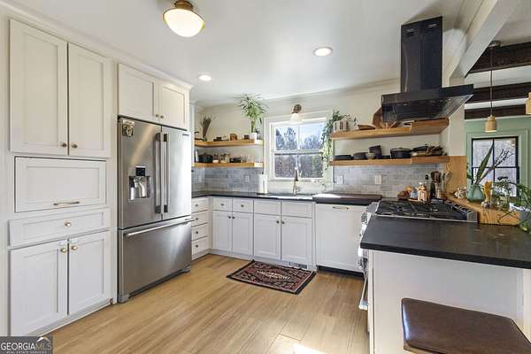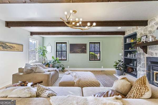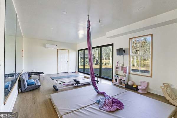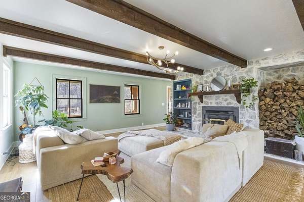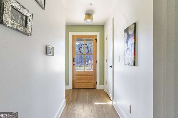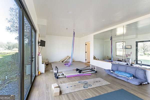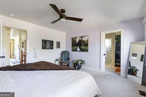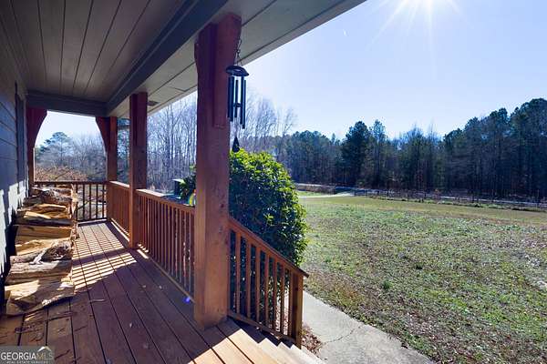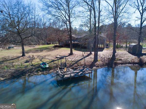 Modern farmhouse meets elevated homestead living on this truly exceptional near 5-acre retreat in the heart of Brooks, GA. Set high above a breathtaking 2-acre, fully stocked lake, this reimagined 1991 farmhouse offers 5 bedrooms and 3 bathrooms and showcases an inspired 2021 renovation with continued upgrades through 2025. Contemporary design, modern farmhouse character, and subtle Japanese/California influences blend seamlessly to create a home that feels refined, intentional, and deeply connected to the surrounding land and water. Outdoor living is a defining feature of this property. A brand-new roof and expansive multi-level deck with cable railing system (2025) provide unobstructed lake views and effortless entertaining. The stepped deck design flows naturally toward the yard and lake, creating ideal spaces for dining, relaxing, or future hot tub placement. A private dock extends onto the lake, perfect for fishing, kayaking, or quiet mornings on the water. Mature trees frame the landscape, including a rare American Chestnut whose canopy shades a natural lakeside lounging area. A four-season dining room with Panoramic Door Systems opens fully or partially, or closes behind bug and wind screens, offering a true indoor/outdoor experience year-round with uninterrupted lake views. Inside, the open kitchen features extended countertops, bar seating, and lake-facing sightlines, with Frigidaire Pro refrigerator and range conveying with the sale. The living area is anchored by a stunning whitewashed stone wall with wood-burning fireplace, complete with seasoned white oak ready for cozy winter fires. All bathrooms are finished with thoughtfully selected tilework and modern fixtures, including standing showers and a soaking tub in the guest suite. The finished basement expands the living space with a home theater/movie room designed for a wall-sized 4K projector, two additional bedrooms (one currently used as a music studio or creative workspace), dual HVAC rooms for separate level control, and unfinished storage and utility space. A standout basement gym features full-wall mirrors, weather-sealed construction, LVP flooring, a dedicated mini-split, and Panoramic Door Systems that open directly to the lake-creating a rare indoor/outdoor fitness, yoga, or meditation space. For those seeking self-sufficiency and regenerative living, the land is exceptional. The full near 5 acres are fenced, with a Deer Buster extended deer fence protecting expansive in-ground garden beds, established fruit trees, berry bushes, and orchard areas. A 20x12 aluminum greenhouse serves as the heart of the garden and conveys fully equipped with tools, hoses, pots, silage tarps, and irrigation supplies. A storage/chicken shed supports small-scale farming, while a charming on-site farm stand offers the perfect setup for sharing produce, flowers, or eggs with the community. Across the lake, a wooded pocket with a small deer blind provides opportunities for quiet reflection, lakeside picnics, or bow hunting. Additional highlights include a detached 2-stall garage, offering ample parking, workshop, or storage space. Notable 2025 upgrades include: * Solar panel system (4kW input) with backup, solar-ready infrastructure * Electric vehicle charging station * New roof and decking system * Panoramic Door Systems in the dining room and basement gym * Simple Pump well backup system for off-grid water access Private, peaceful, and truly one of a kind, this property offers a rare balance of high-end contemporary living, regenerative homesteading potential, and off-grid readiness-all in harmony with the land and water. Located in the beloved small town of Brooks, GA, known for its quiet charm, strong community, and convenient access to Fayetteville and Senoia, this remarkable home invites its next stewards to live beautifully, intentionally, and in rhythm with nature.