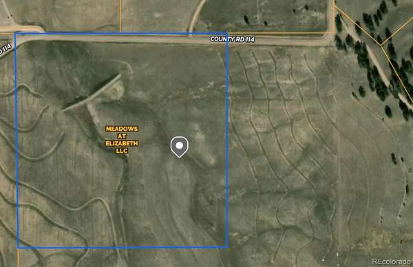Est $4,478/mo~40 acres of sub dividable to four 10 acres lots is available, extra attraction is a pond in the middle , accessible by county road 114, great views and 10 min away from town of Elizabeth. Nearby 10 acres lots are selling for $40,000 per acre and this one is a great potential at $15,000 per acre. This comes with water rights quantity TBD. Great opportunity for local builders or someone like to build their own on Acrage parcels in a beautiful landscape with lot of views.