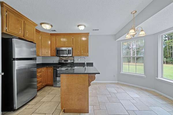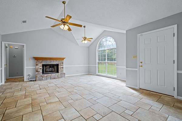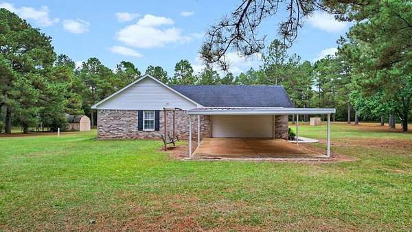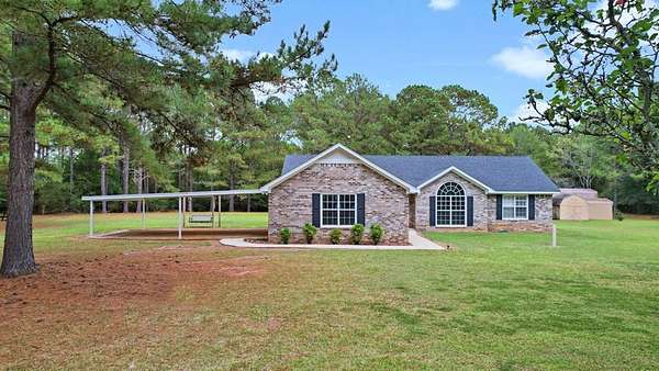 * BACK AVAILABLE AT NO FAULT OF THE SELLERS!!! * Country Living on 14 Acres in Terrell County! Enjoy peaceful country living with plenty of space and privacy on this beautiful 14-acre property! This charming home offers 3 bedrooms, 2 bathrooms, and nearly 1,600 sq ft of comfortable living space, plus a 2-car garage, double carport, and screened-in porch perfect for relaxing and taking in the quiet surroundings. Step inside to a spacious family room featuring easy-care tile flooring, a cozy gas log fireplace, and a vaulted ceiling that enhances the open feel. The living area flows seamlessly into the dining space and kitchen, which boasts rich wooden cabinets, black granite countertops, stainless steel appliances, and a picture window overlooking the backyard. The primary suite includes beautiful wood-look tile flooring, a walk-in closet, and a private en suite bath. The additional bedrooms are located on the opposite side of the home for added privacy, with convenient access to the second full bath. Enjoy evenings on the screened porch, the perfect spot to enjoy peace and quiet of your surroundings! Outdoor amenities include a workshop (12'x16') with RV canopy and hookup, a tractor/ATV awning, and a hobby workshop (16'x28') with a concrete floor and a metal pole barn (30x30). Recent updates include fresh interior paint, an updated HVAC system (2022), an architectural shingle roof (2017, 40-year), and a brick exterior. All of this in a quiet country setting with fiber optic internet available! A rare opportunity to enjoy peaceful living with all the modern conveniences!