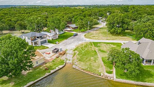 This is currently a main body waterfront lot with a boat ramp but the developer is selling as a build job. The plan for this lot is a contemporary style home approximately 3450 square feet, 2 story, 4 bedroom, 3.5 bathrooms with large upstairs deck overlooking the lake and a 2 car garage. The property is located in a very quiet subdivision on the Fort Worth side of town with no HOA. Photos of the lot are uploaded as well as rendition and floor plan available.