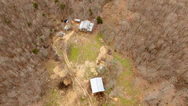 The land is ready for livestock and recreation, featuring approximately 10–13 acres of barbed and woven wire fencing. Outbuildings include a 30’ x 40’ open pole barn, a 12’ x 20’ carport/workspace, a 12’ x 26’ dog house/chicken coop, and a hog pen shelter. With two springs on the property and ample trails for horses or ATVs, this is the ultimate retreat for those seeking independence and the quiet of nature.