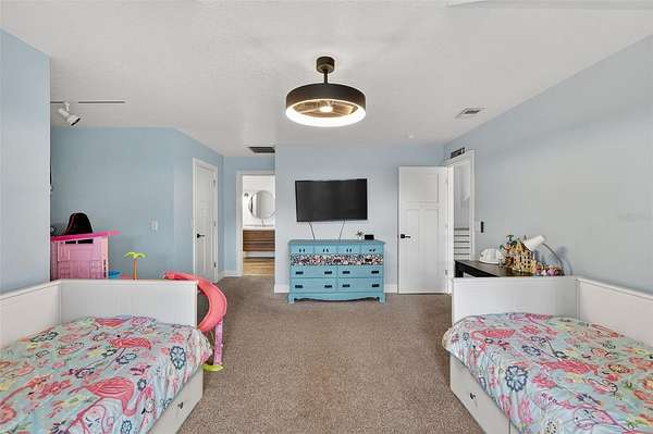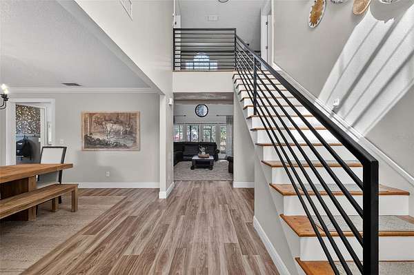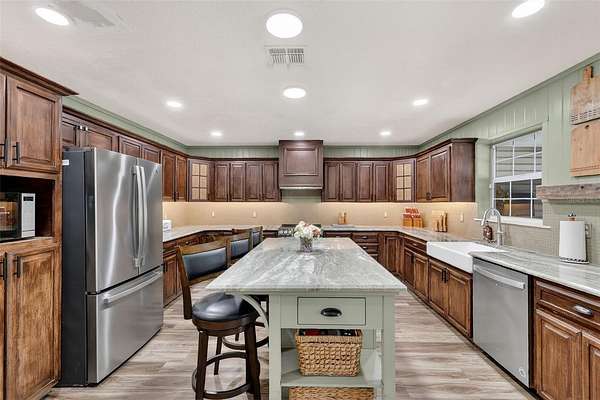 A true standout feature is the approximately 1,250 sq. ft. barndominium-style structure offering a large open room with kitchenette, two additional rooms, one full bath, and a half bath with direct pool access. Ideal for entertaining, a home office, studio, private retreat, or flexible use consistent with zoning, this bonus space expands the possibilities and sets this property apart.