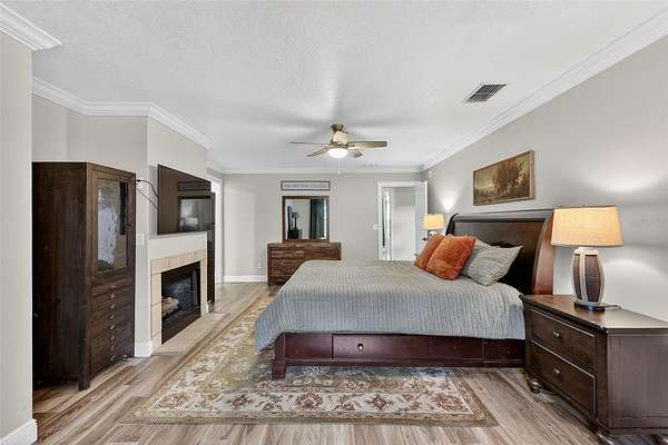 - Cathedral Ceiling(s), Ceiling Fans(s), Crown Molding, Eat-In Kitchen, Kitchen/Family Room Combo, Primary Bedroom Main Floor, Stone Counters, Walk-In Closet(s)