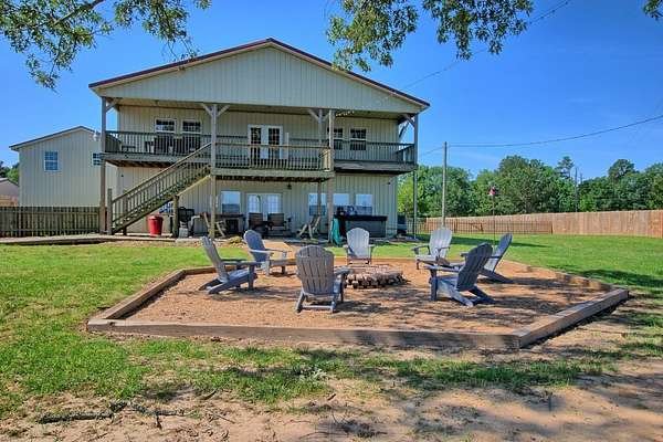 TX sized Barndo on 2.763 acres overlooking Toledo Bend Lake! If you're looking to RETIRE or INVEST, this gorgeous 3800 sq.ft. lake house is priced to sell. The home features 5B/3B plus 4 built-in twin-XL bunk beds. Spacious kitchen/dining/living area opens onto a lg covered back patio. Kitchen features beautiful quartz countertops, custom cabinets, large kitchen island, huge walk-in pantry and 2 full size ovens. Two bedroms, 2 full baths and laundry room are on 1st floor. Upstairs are 3 bedrooms, full bathroom, built-in bunk beds, lg entertainment area, 3rd floor bonus loft and lg covered deck accessed through double French doors. Outside you will enjoy panoramic lake views, picturesque skies, and eagles soaring by. The house also features a large firepit area, extra sitting deck, and large pond. The large double wide, double deep garage has attached carport and unfinished 2nd floor that can easily be transformed into additional 768 sq.ft. of living space. Furniture negotiable.