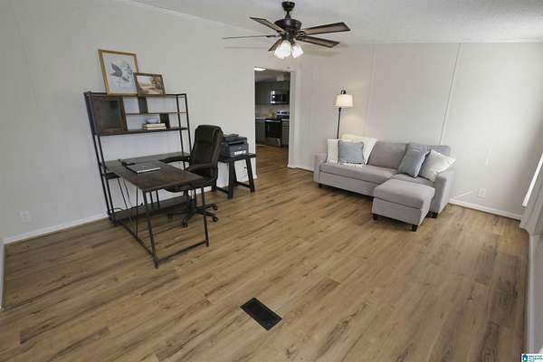 Welcome to peaceful country living in the highly sought-after Pleasant Valley community! Situated on 5 private acres, this beautifully renovated manufactured home offers the perfect blend of space, comfort, and modern updates. Inside, you'll find 3 bedrooms, 2 full bathrooms, plus a dedicated office, all centered around a large open concept living area filled with natural light. The home features brand-new lighting, fixtures, flooring, paint, and appliances throughout, making it truly move-in ready. Both bathrooms offer tiled showers, with the primary suite boasting a relaxing garden tub and two walk-in closets. Step outside and enjoy the expansive open front porch--ideal for morning coffee or unwinding while taking in the quiet surroundings. The property also includes an enclosed barn, providing excellent storage or hobby space. With ample privacy, room to roam, and tasteful updates from top to bottom, this property is a rare find for those looking to enjoy country living at its best!