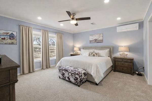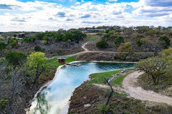 Eastwood Ranch | 92 Acres | Live Water! Turnkey Hill Country Ranch ideally located just 9 miles from Kerrville & 22 miles from Fredericksburg w/convenient access to San Antonio. This exceptional 92 acre property offers the perfect blend of a gentleman's ranch, private hunting retreat & income producing opportunity. An excellent 1031 exchange candidate. Improvements include a fully furnished 4BR/3BA home spanning 2,800 sq ft (built in 2022) along w/a 4,000 sq ft barn designed for storage, entertaining or recreational use & private shooting range & skeet setup. The land showcases rolling topography, mature Live Oaks & Red Oaks, improved pasture, cleared cedar & an extensive trail system providing easy access throughout. The property features a year-round, live water spring-fed, half-acre pond w/a concrete bottom, solar aeration system & overflow, complemented by a Trex-decked gazebo & floating pier. An Agricultural Exemption is in place. Abundant wildlife including whitetail deer, axis, turkey, dove & occasional exotics. 5 deer feeders placed throughout. Perimeter fenced - Rare Opportunity! Call today and schedule a showing!
