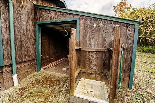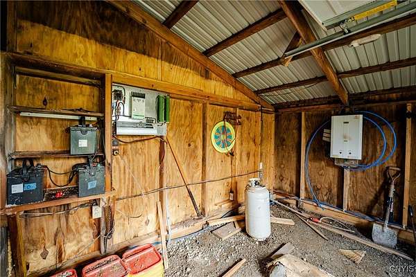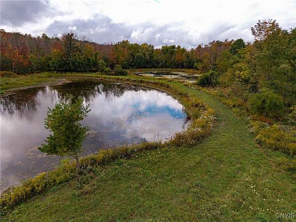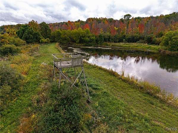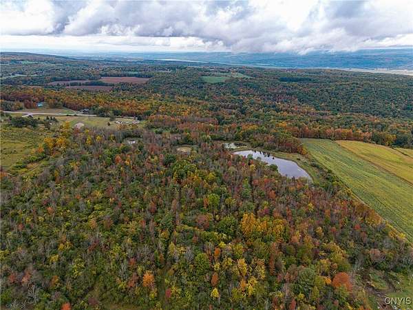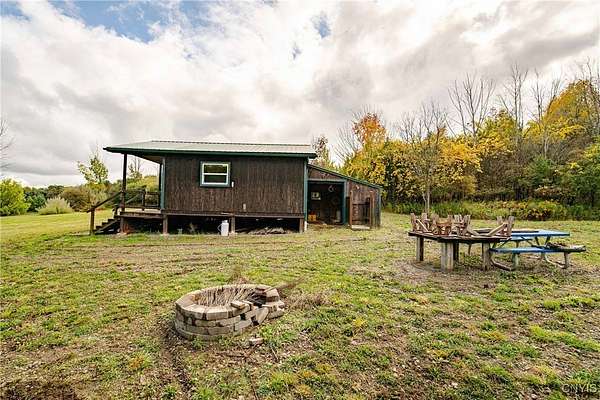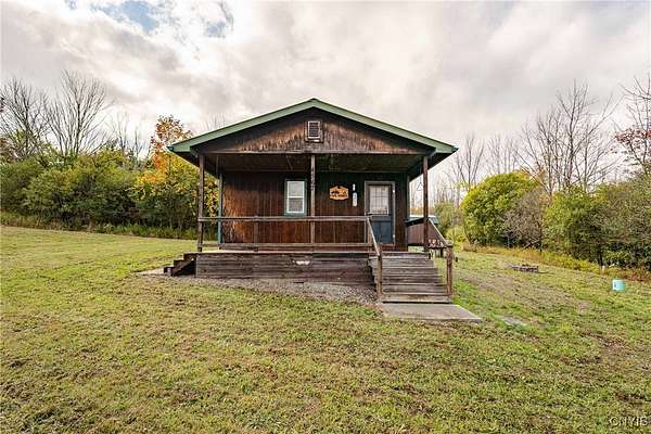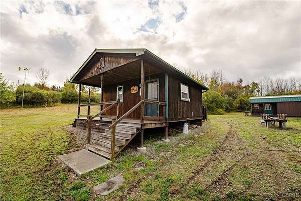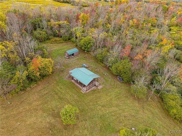This 44 acre property consists of a 1 bedroom cabin with timberland and a pond for exceptional hunting, fishing, and majestic views! Discover this rare opportunity to own 44 acres of semi-flat timberland, and easy access recreational land located in Ossian NY about an hour from Rochester and only 10 minutes from Dansville. Nestled in the rolling hills of Livingston County, this property offers a unique blend of seclusion, natural beauty, and investment potential. This cabin is surrounded by your own hardwood timber, and several large agriculture producing farms. Cabin space is an open floor plan with a kitchen, a large space for a dining room or living space including a ceramic tile hearth pad in one corner for future heating installation if so desired. Turning the corner you'll find the open bedroom area along with a walled-off bathroom location. This cabin features a fully off-grid setup for zero utility bills, however there is power available a short distance to the paved road. Current power is supplied via wind turbine and battery charging system located in the garage attached to the main cabin. This space also holds the battery bank system, on demand hot water tank, and outdoor shower area. Diverse mix of hardwoods and sporadic pine including red oak, white oak, maple, ash, apple trees and other native timber species. Brush hogged trails for ATV and Side by Sides have been developed to traverse the property with ease. The terrain is easily accessed via these trails to the back of the property where you'll discover 5, yes that's right, 5 amazing ponds already established and well maintained. They have been cleared out recently and are thriving; drawing the attention of waterfowl, whitetail deer, turkeys and other wildlife. An additional shed-cabin behind the main cabin which will allow for extra storage, or an additional living quarters-bunk house for your hunting party or guests. Near the Rattlesnake Hill Wildlife Management Area which offers 1,800 acres of recreational and hunting access, along with the Ossian State Forest which offers an additional 1,300 acres. All mineral and timber rights convey to the new owner.