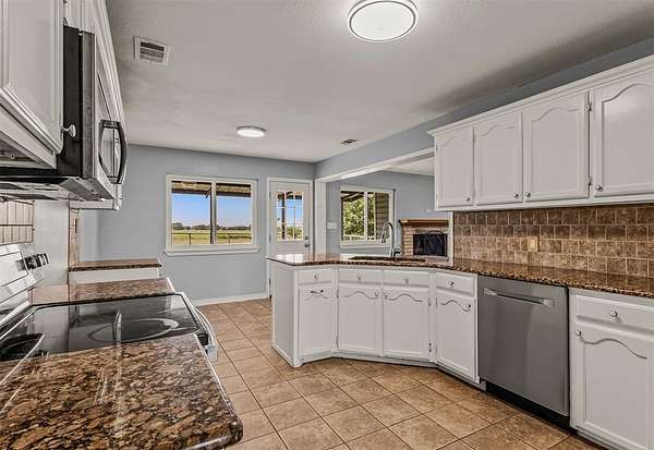 Outside, enjoy wide-open country views, a 2-car garage, and a storage building for all your tools and hobbies. The property is equipped with solar panels, offering added energy efficiency and potential cost savings. Conveniently located near I-30, this home provides an easy commute while still giving you that peaceful, rural feel.