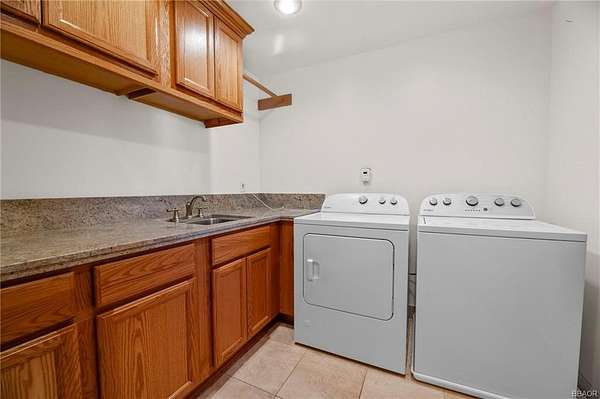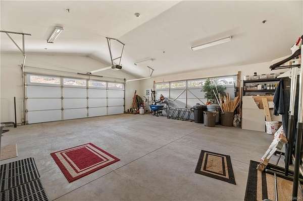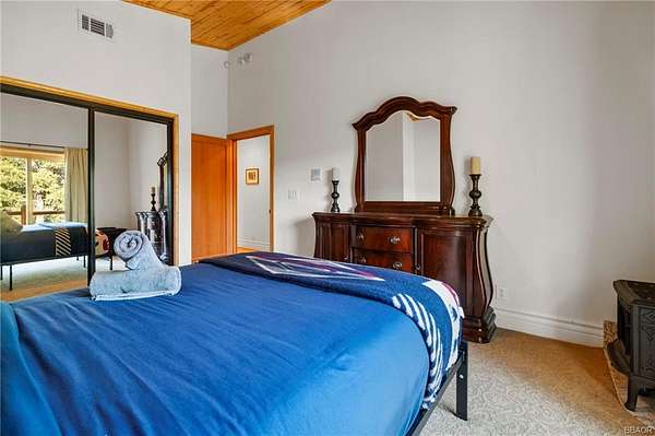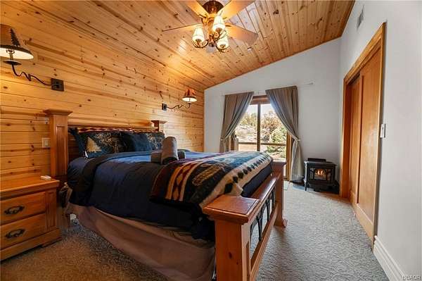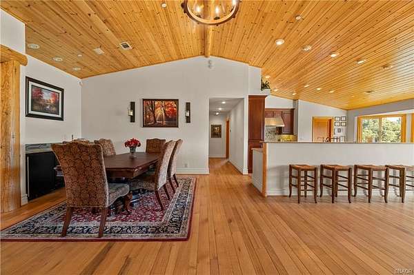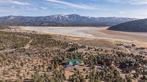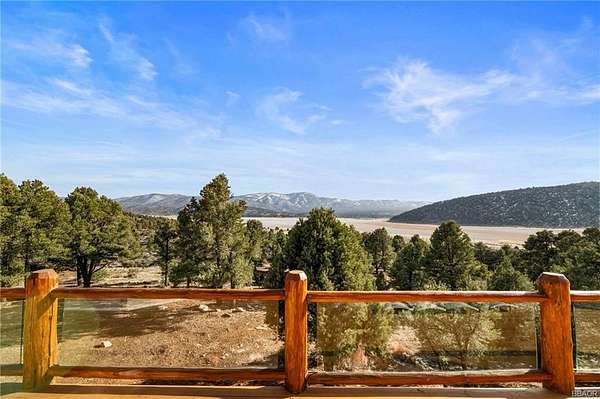 Soak in breathtaking panoramic views of the San Bernardino Mountains, ski slopes, and Baldwin Lake from this stunning single-story retreat. Designed with soaring vaulted ceilings and an open floor plan, this home features expansive windows that frame the beauty of Big Bear Valley. With four en-suite bedrooms, each offering a cozy freestanding fireplace, your guests will feel welcomed and at home. The primary suite, thoughtfully positioned for privacy, boasts a luxurious jetted bathtub with unobstructed views and a relaxing sauna. The chef's kitchen is designed for effortless entertaining, complete with granite countertops, dual microwaves, ovens, and sinks. A charming breakfast nook provides the perfect spot to enjoy your morning coffee while taking in the serene surroundings. Step outside onto the partial wraparound Trex deck, where you can immerse yourself in nature. Nestled on a sprawling 70,131 sq. ft. lot that adjoins the National Forest, this property offers unmatched tranquility and seclusion. Practical features include a well and two 500-gallon water tank for fire suppression, ensuring both comfort and peace of mind. Experience the perfect blend of luxury, functionality, and breathtaking scenery in this one-of-a-kind mountain retreat.