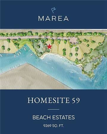 Homesite 59 is located in the Beach Estates neighborhood and offers a larger homesite with views toward the Intracoastal Waterway and Estes Flats. This homesite includes a deeded boat slip within Marina B, providing access to the water and surrounding coastal environment. The Beach Estates neighborhood is designed for homes that take advantage of scale, views, and outdoor living, with a focus on privacy and connection to the landscape. Buyers may build using a pre-approved plan to streamline the process, select from approved designs, or design a custom home in accordance with Marea's architectural guidelines and review process. Marea is a waterfront community of 67 homesites centered around a protected cove, featuring two private marinas and access to Estes Flats and the Intracoastal Waterway. The community is designed around architecture, outdoor living, and time spent on the water