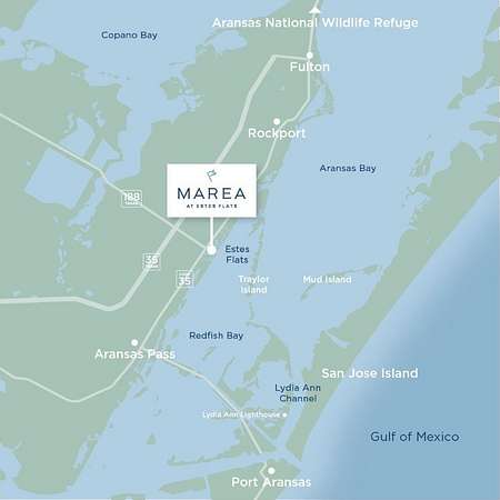 From Hwy 35 Business in Rockport, turn into the Marea community at the light at 188. The Sales Gallery is the building to the left as you drive in