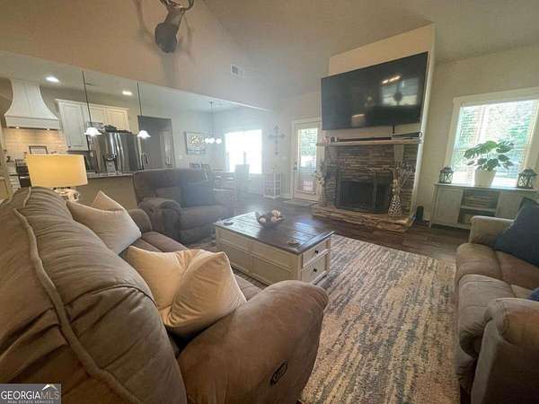 Welcome to 457 Old Good Hope Rd-an exceptional 4-bedroom, 3-bath home situated on 2.3 private acres in the heart of Walton County. This property offers the perfect blend of space, comfort, and outdoor living. Inside, a thoughtfully designed floor plan features an open-concept kitchen and living area with vaulted ceilings, abundant natural light, and a striking stacked-stone fireplace. The kitchen is both functional and inviting with granite countertops, stainless steel appliances, custom cabinetry, and a large island, plus an eat-in breakfast area and a separate formal dining room for entertaining. The spacious primary suite provides a relaxing retreat with tray ceilings and a well-appointed bath featuring double vanities, a soaking tub, and separate tiled shower. Three additional bedrooms and two full baths offer flexibility for family, guests, or a home office. Durable flooring runs throughout the main living areas, enhancing both style and ease of maintenance. Step outside to enjoy your own private backyard oasis-complete with a fenced yard, sparkling swimming pool, and a covered back porch with fireplace, ideal for year-round outdoor living and entertaining. With 2.3 acres, there is ample room to expand, including space for a future detached garage, workshop, or additional outdoor amenities. Located in desirable Good Hope, you'll enjoy a peaceful, rural setting with convenient access to Monroe, Athens, and Metro Atlanta, along with top-rated schools, scenic countryside, and nearby parks and outdoor recreation.