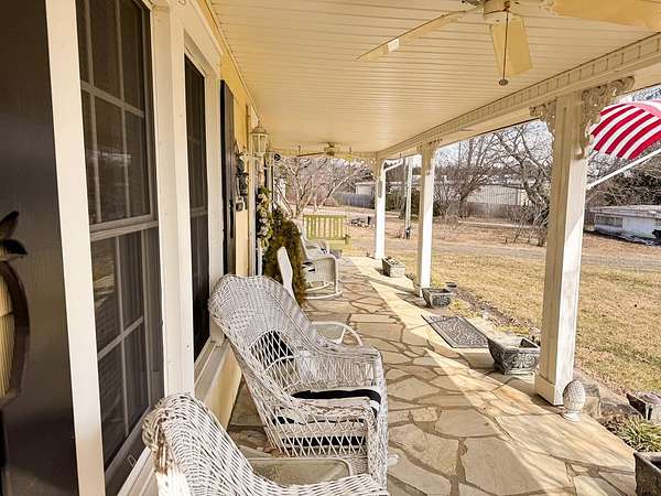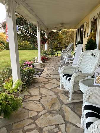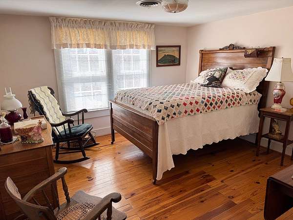 Nestled on 3.11 peaceful acres, this charming 1946 farmhouse has been completely remodeled while maintaining its classic character. Modern updates include new electrical and plumbing systems as well as new windows and doors ensuring comfort and efficiency throughout. The beautifully renovated kitchen features custom cabinetry, brand-new appliances, and a cozy sunroom/breakfast nook perfect for morning coffee or enjoying the view. The porch and patio also boasts beautiful custom rock work. Upstairs, the original pine flooring has been thoughtfully restored, adding warmth and timeless appeal. The home offers large closets-an uncommon feature in homes of this era-providing plenty of storage. A new roof was installed in 2022, adding to the home's long-term durability and peace of mind. Located just about 10 minutes from Mount Airy, this property combines country charm with convenient access to town amenities. Whether you're looking for a serene primary residence or a weekend getaway, this move-in-ready farmhouse delivers comfort, style, and space.
