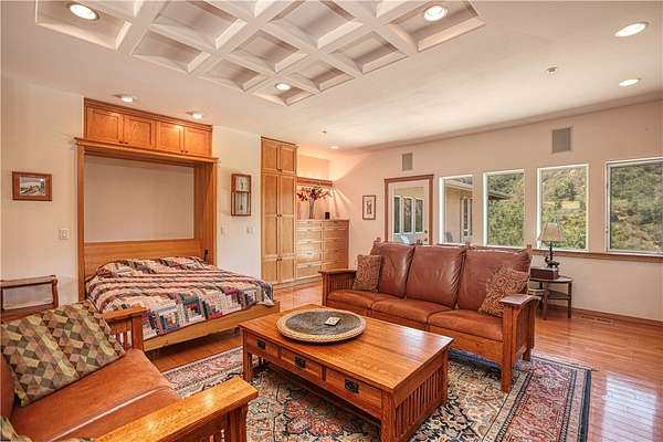 Detached power room with backup generator and solar battery system. Built-in storage throughout for optimal organization. This one-of-a-kind property offers privacy, comfort, and the space to live, work, and play in style. Owner May Carry.