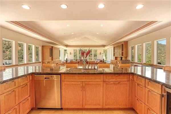 The separate pool house includes one bedroom and two bathrooms, providing a private retreat for guests or extended stays. Outdoor living shines with a solar-heated infinity pool, built-in BBQ, fire pit, and lush surroundings.This home is thoughtfully designed for comfort, utility and elegance.