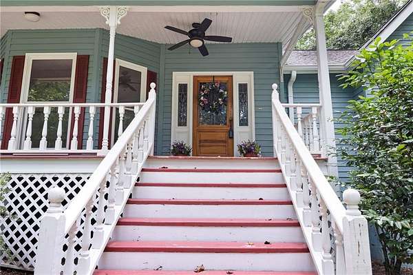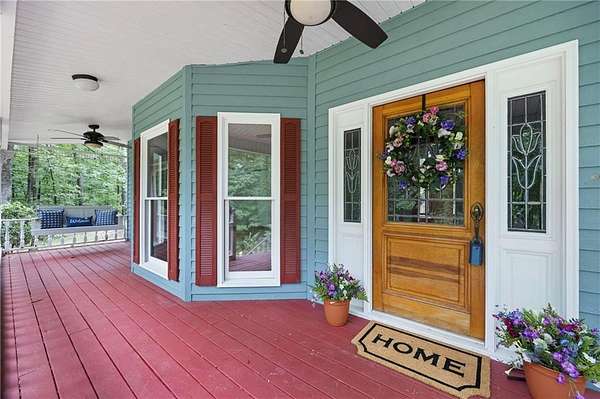Welcome to your dream home--where privacy, character, and convenience come together. Tucked away on 4.5 serene, wooded acres, this custom-built gem offers a tranquil escape with unbeatable access to I-20, premier shopping, and dining just minutes away. Step onto the charming rocking chair front porch, complete with a porch swing and a stunning custom leaded glass front door--a perfect welcome for guests or peaceful mornings with coffee. Inside, you'll find a spacious, thoughtfully designed interior featuring fresh paint and brand-new carpet throughout and beautiful reclaimed hardwood floors full of warmth and charm. An open-concept layout that flows seamlessly between living, dining, and kitchen areas! Chef's kitchen with custom cabinetry, granite countertops, double ovens, a cooktop, and a built-in desk--ideal for remote work or meal planning. Dramatic great room with vaulted ceilings, perfect for entertaining or watching the game. The main-level primary suite offers new carpet and paint, a luxurious soaking tub, separate shower, and a huge walk-in closet. Also on the main level: a stylish half bath with custom vanity and a spacious laundry room with a utility sink. Upstairs, enjoy two oversized secondary bedrooms, freshly painted and carpeted, with large closets and a full bath.Need more space? The massive unfinished basement with a boat door provides endless potential--whether you envision a home gym, workshop, storage area, or future living space. Welcome Home!