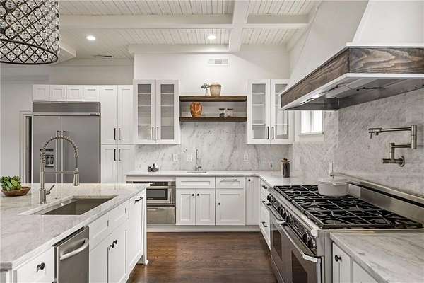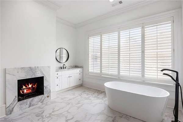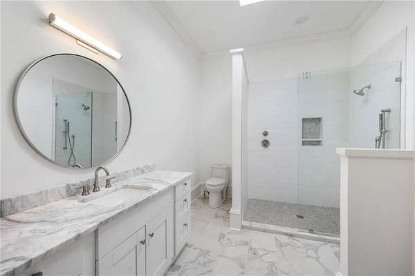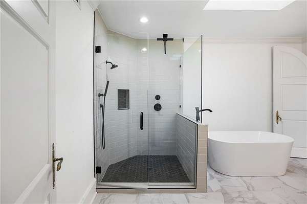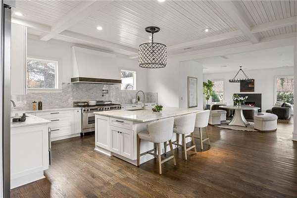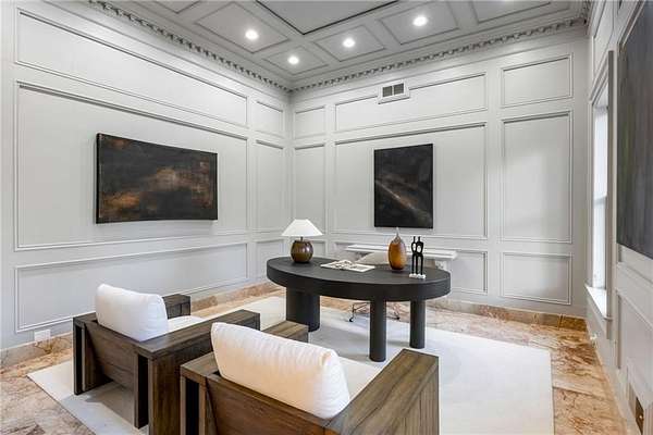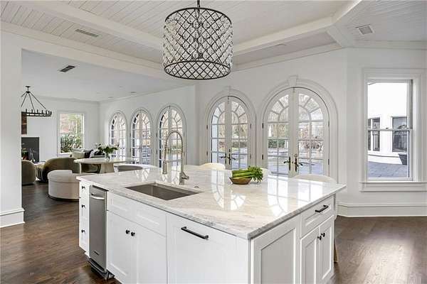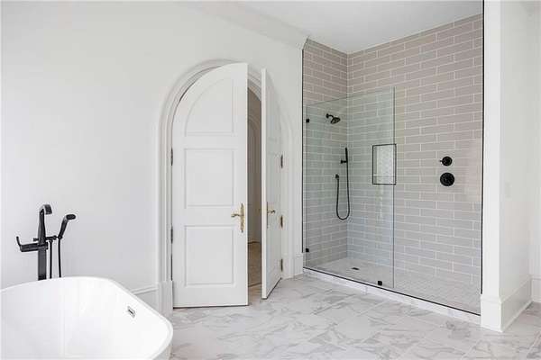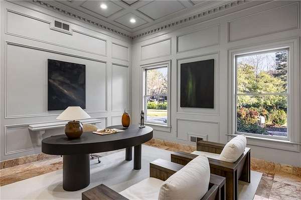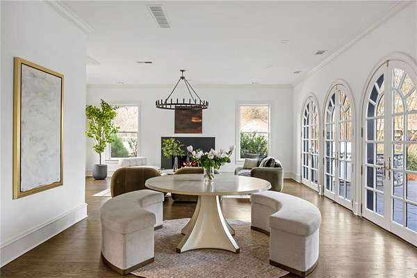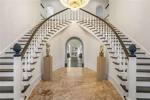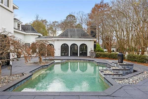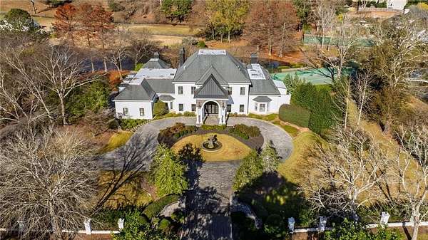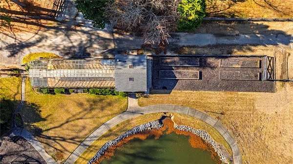 Set on +/-7.79 acres along sought-after Columns Drive, this private estate offers a rare blend of space, recreation, and convenience across from the Chattahoochee River. Originally designed as an equestrian property, the grounds feature a 5-stall barn with multiple pastures and paddock, a large private pond with fountain and dock, walking trails, tennis court, saltwater pool and spa, playground, gazebo, and greenhouse. A separate two-story carriage house presents the potential of being a guest house, office, or studio with a full bath and two-car garage accessed by its own gated service entrance. Inside the main residence, a grand entrance with dual staircases opens to generous living spaces designed for both everyday living and large-scale entertaining. The main living area overlooks the pool through walls of arched French doors, seamlessly connecting indoor and outdoor spaces. A formal dining room, private office, and an oversized primary suite with direct pool access anchor the main level. The chef's kitchen is equipped with new Italian marble, a scullery, walk-in pantry, and flows into a breakfast room and fireside family room, all with views of the pool, pond, and backyard. Upstairs, the east wing features four oversized ensuite bedrooms, while the west wing offers two additional ensuite bedrooms ideal for an au pair or in-law suite, along with laundry and a secondary staircase. A third-floor bonus level includes a full bar and half bath, well suited for a game room, theater, or entertaining space. The estate is enhanced by smart home features, newer high-efficiency HVAC systems, tankless water heaters, updated pool tile, Tesla chargers, and a whole-property generator capable of powering all structures. Fully fenced with two gated entrances, the property is located within the Sope Creek, Dickerson, and Walton school districts and benefits from low Cobb County taxes, with quick access to the Chattahoochee River National Recreation Area for hiking, biking, and kayaking.