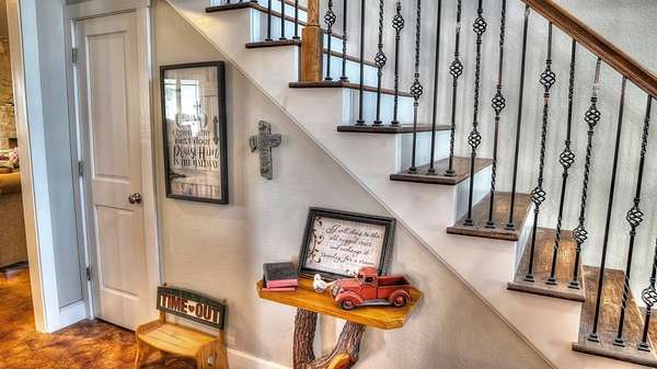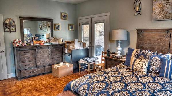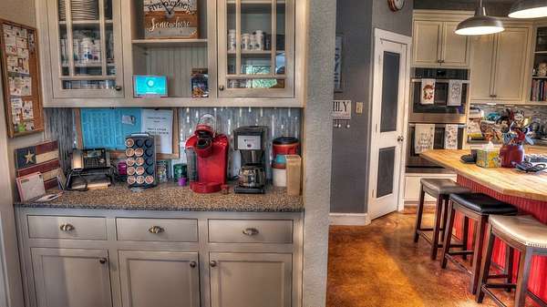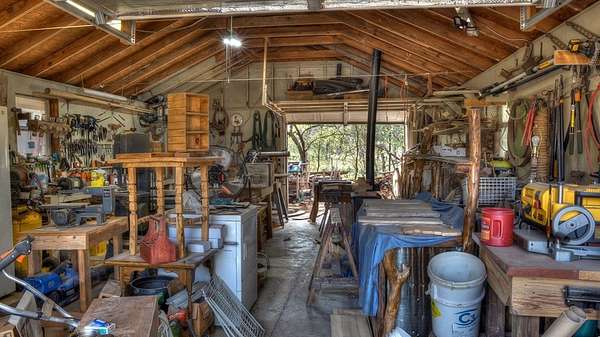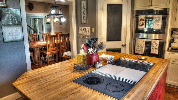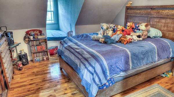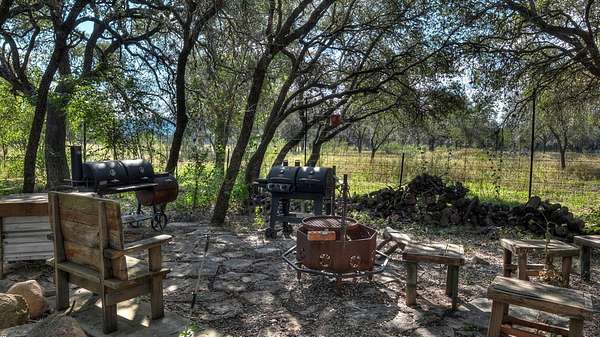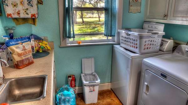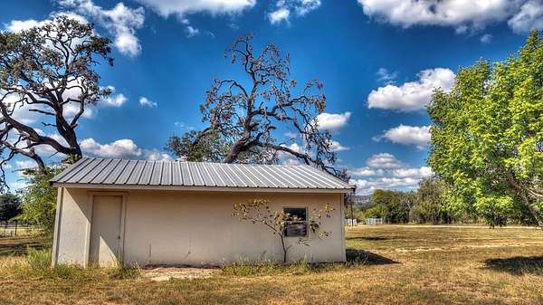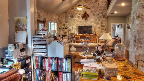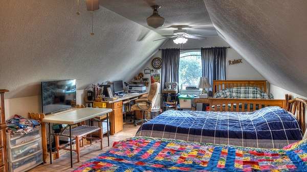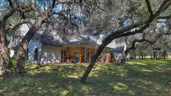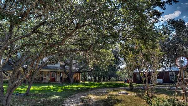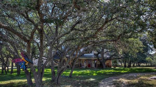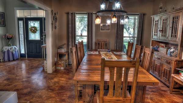 Experience the best of country living in this beautiful, spacious home set on a sprawling 7.49 acre estate. Built in 2003, this two-story home offers five bedrooms and three and a half bathrooms across 3,144 square feet of living space. Highlights inside include high ceilings, stained concrete floors, whole-home audio, a breakfast nook, formal dining room, a downstairs bedroom/office, two bedrooms with a bathroom upstairs, and another bedroom with ensuite bathroom above the garage. The large primary suite features French doors opening to the back patio and an ensuite bathroom with a walk-in closet, soaking tub, tiled shower, and dual vanities. There's plenty of storage with indoor closets, a partially finished attic, an attached two-car garage, a portable storage building, a detached one-car garage, and a workshop. The level, fenced property is ideal for horses or 4H/FFA agricultural projects. A circle drive, a garden, and an open field grace the front of the property, while numerous oak trees provide shade around the home. Utilities include water from two wells, underground electricity, and an RV hook-up. Select furnishings are included. No deed restrictions or HOA.