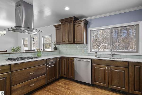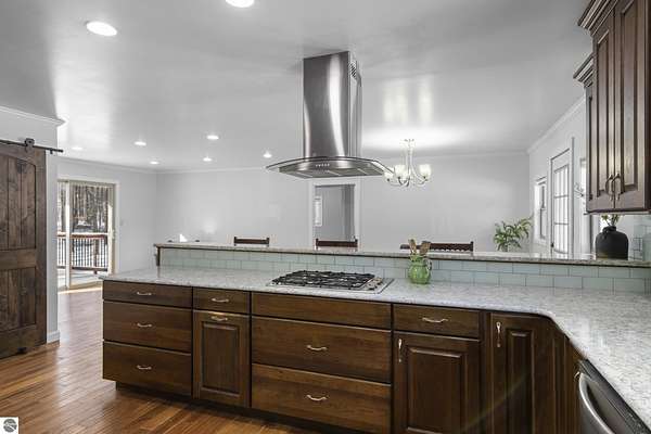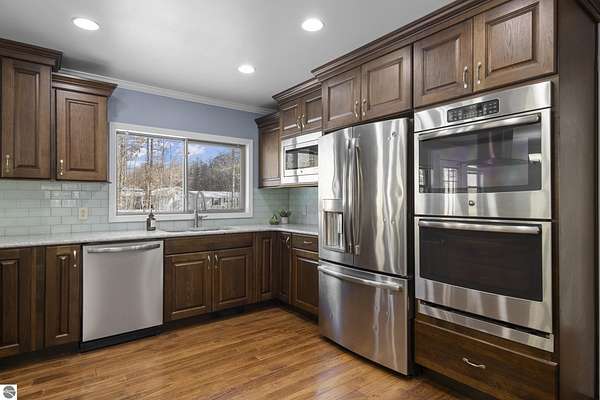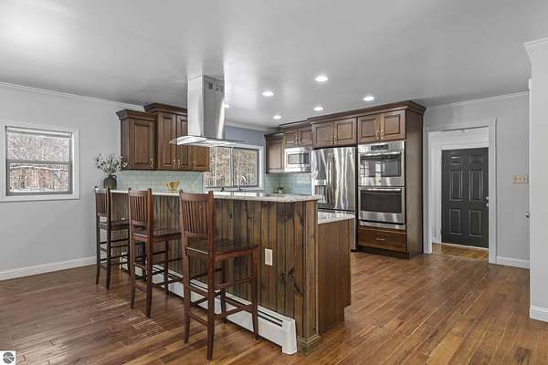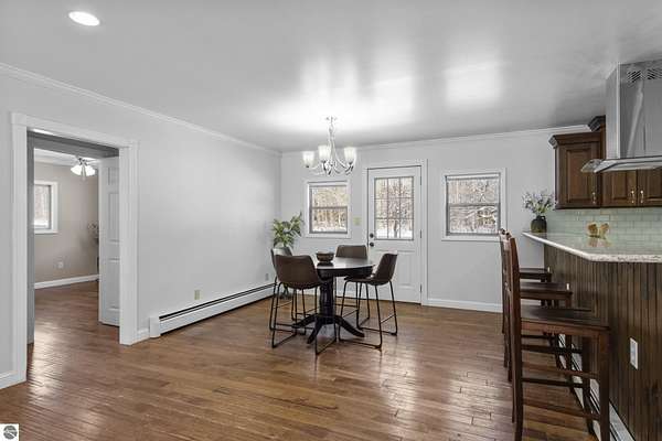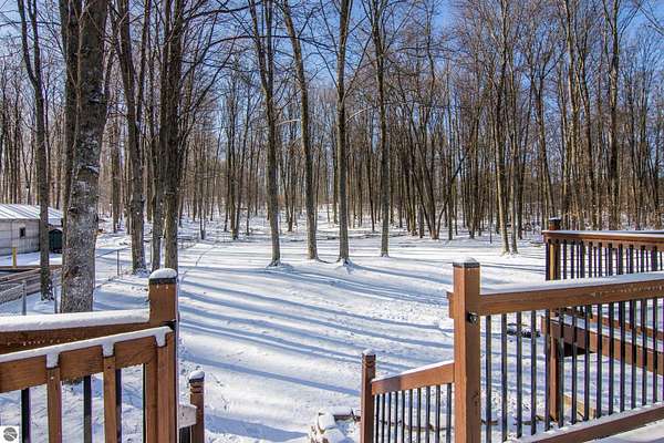 This 4-bedroom, 2-bath ranch sits on nearly 5 acres surrounded by mature maple trees, offering the perfect blend of privacy and space to enjoy the outdoors. The property features a pole barn and outdoor wood heater. Inside, the open floor plan highlights a large and bright updated kitchen that flows seamlessly to the dining area and living room. Enjoy the gated deck overlooking the large fenced-in yard—ideal for relaxing or entertaining. Spacious bedrooms, a generous laundry room with additional storage, and a practical mudroom enhance the home's comfortable and convenient layout. The lower level is a walkout with additional living space. Located between Cadillac and Traverse City, this property offers peaceful country living with easy access to nearby amenities.