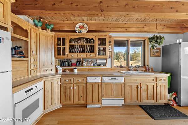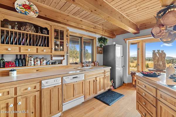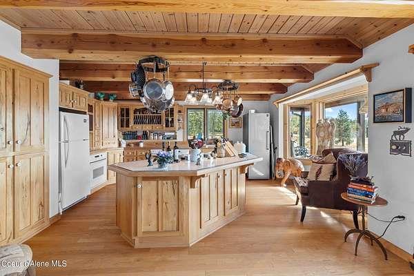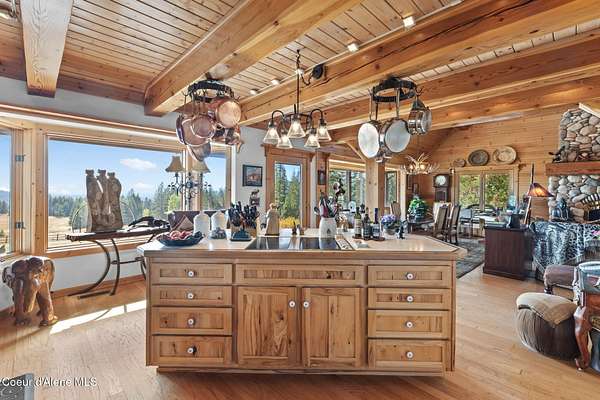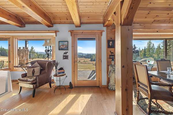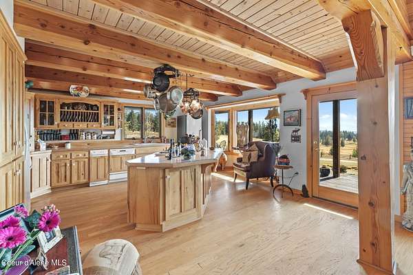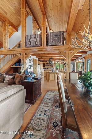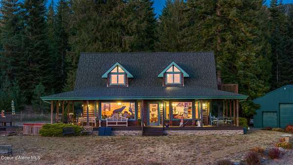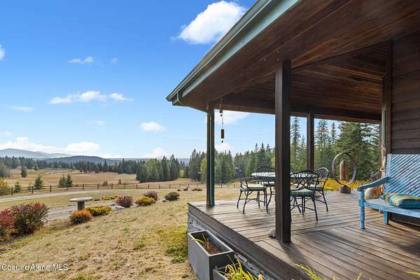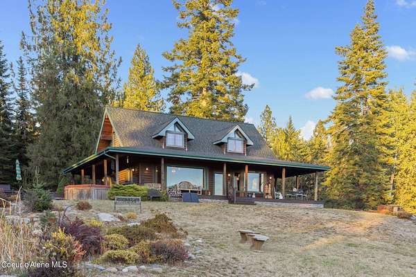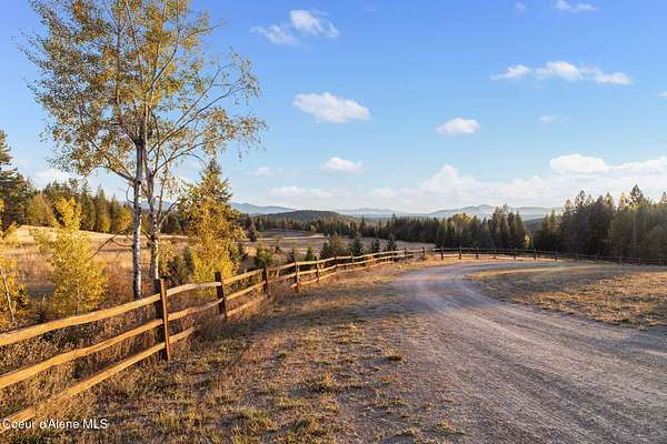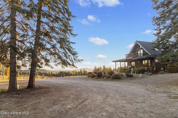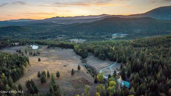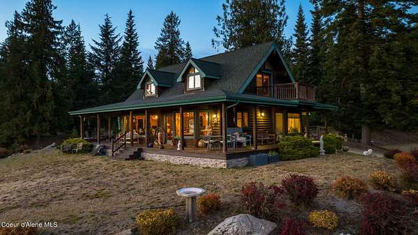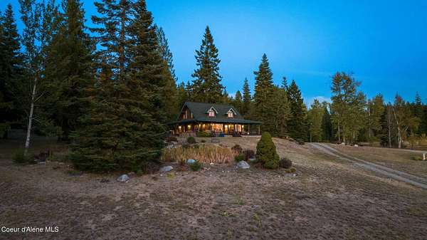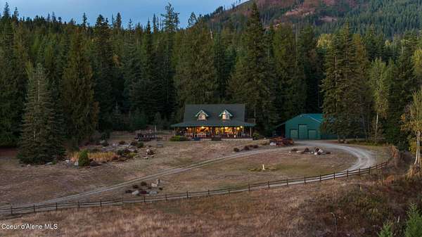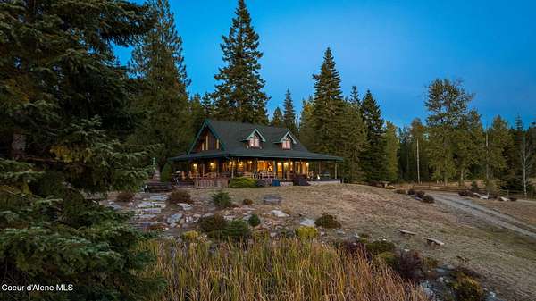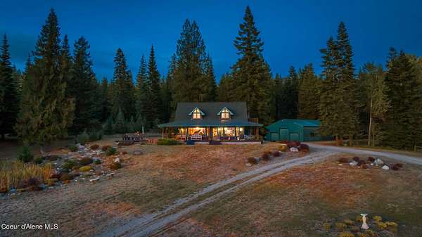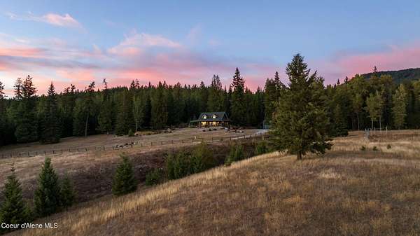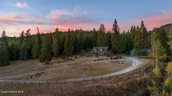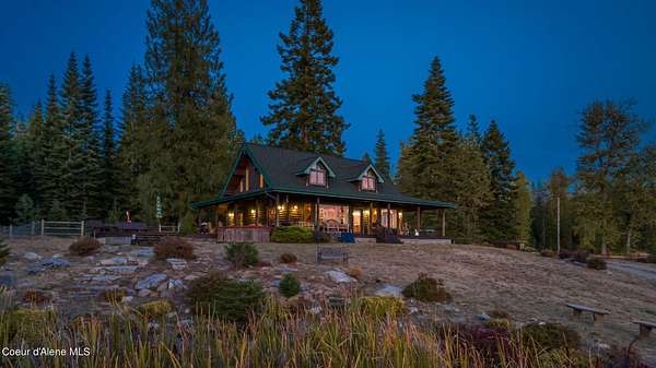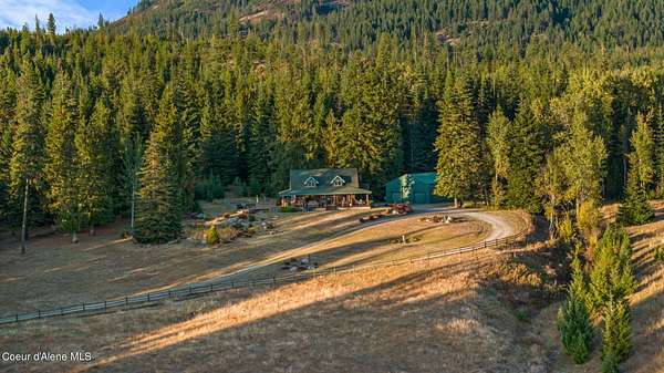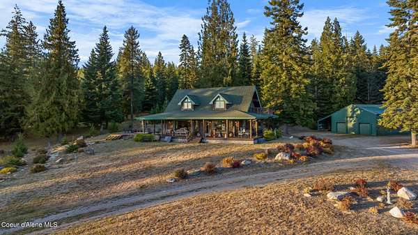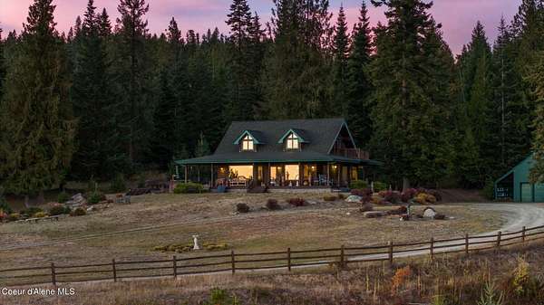 Set on 40 picturesque acres, this exceptional ranch offers a rare blend of open pasture, mature timber, selectively cleared forest, a seasonal creek, and a tranquil pond-all with direct access to more than 20,000 contiguous acres of public land. The 2,838sf custom country home is perfectly positioned to capture sweeping views, abundant wildlife, and the peaceful sounds of nature. Enjoy breathtaking North Idaho sunrises and sunsets from the expansive wraparound porch. Inside, the home features a stunning floor-to-ceiling rock fireplace, beautifully crafted custom woodwork, new central heating and air, and a new wired whole-house generator for added comfort and reliability. The property is well-equipped with a 40x50 shop featuring 6 bay doors, plus an attached 15x50 carport-ideal for storing equipment, vehicles, and recreational toys. With fenced pasture, a fully fenced backyard, and a 110' x 110' garden and orchard area benefiting from excellent southern exposure, this property is perfectly suited for a self-sustaining lifestyle--while still remaining within convenient reach of nearby amenities.