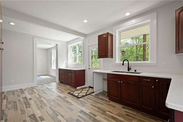 Fully renovated brick home on 2.38 acres in the McGuffey School District offering 4 bedrooms and 3.5 bathrooms. Major updates include wiring, plumbing, HVAC, windows, drywall, flooring, cabinetry, and bathroom fixtures. Inside, the home features spacious rooms, exposed brick, pocket doors, and a restored original entry door that adds character throughout. The flexible layout allows for a variety of living arrangements, with consistent finishes from room to room. Outdoor spaces include a wrap-around front porch and a covered back porch. A detached outbuilding offers additional space for storage, animals, or a workshop. Move-in ready with a blend of original details and updated features, set on a quiet rural property.