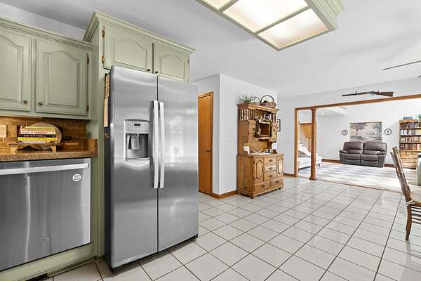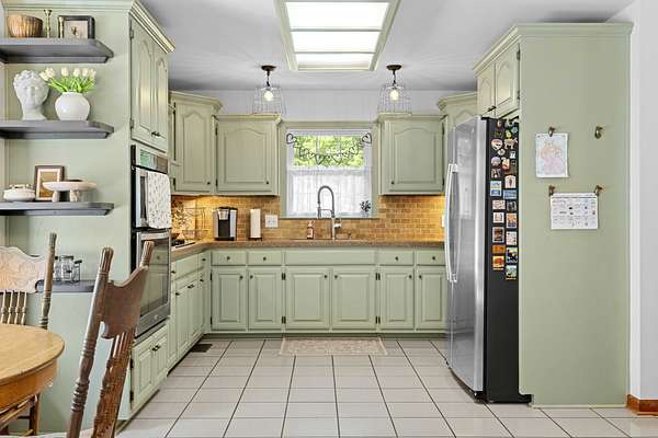 - Built-In Electric Oven, Cooktop, Dishwasher, Disposal, Microwave, Refrigerator, Stainless Steel Appliance(s)