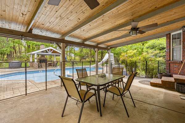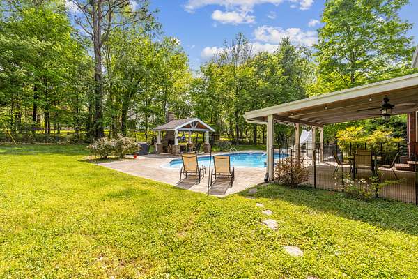 Custom-built on 3+ private acres just minutes from I-65. About 30 minutes to Nashville, 10 to White House, and just a few minutes to historic downtown Cross Plains (don’t miss Thomas Drugs). Setting is hard to beat. A long driveway winds through the front trees, past a classic tree swing, and opens up to a level homesite with the house, yard, detached garage, and shop all on flat ground. Private, peaceful, and set well off the road. Inside, the home displays craftsmanship with updates. Custom millwork, tall ceilings, and great natural light give it a warm, traditional feel with some farmhouse and rustic touches. The main level of the home features a spacious primary suite with double vanities, jacuzzi tub, and walk-in shower, plus a functional layout with formal dining (or flex space), a large living area with a new gas fireplace, and an eat-in kitchen with bay window seating and storage. The kitchen includes newer stainless appliances, built-in oven/microwave, gas cooktop, and tile backsplash. Out back, you’ll find a large covered patio, in-ground saltwater pool with slide and diving board, and a pergola with a stone fireplace. Fenced backyard with multiple access points. There’s also a powered storage building/shop with porch and mower access. The detached 2-car garage takes it to another level with epoxy floors, new roof, its own HVAC, and already stubbed for a full kitchen and bath. Perfect for a guest suite, rental, office, or gym. Back to the home itself: Upstairs offers a large bonus/rec space, plus two bedrooms, a full bath, and an additional flex/office area. The crawlspace is fully encapsulated with a commercial-grade dehumidifier for peace of mind. Well cared for, thoughtfully improved, and truly move-in ready. This is the kind of property that’s hard to find and easy to fall in love with.