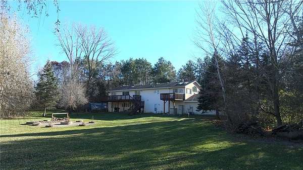 This entertainer's dream in Stacy, MN, offers unparalleled privacy on a gorgeous 3.8-acre wooded lot featuring a picturesque pond. The property is a car enthusiast’s paradise, featuring 6+ car garages. This includes a massive 1,163 sf attached 4-car garage (rebuilt in 2023/2024) featuring 12’x16’ insulated doors, a pull-through garage door, 200-amp service for EVs or welding, & an external 30-amp RV hook-up. Inside, the home connects to a spectacular 1,200+sf shop & entertainment center(rebuilt in 2024). This climate-controlled space w/its own heat/AC is finished w/LVT flooring, a projection TV w/surround sound system (stays with the home), & a buffet area w/a newer refrigerator—ideal for hosting large gatherings. The upper level shines w/a bright, vaulted living room w/a brick wood-burning fireplace. The kitchen is equipped w/stainless steel appliances, a skylight, & a large deck (31’x11’) w/double-sided deck access. The massive primary bedroom is a true sanctuary, offering a vaulted ceiling, a 3-sided gas fireplace, 4 skylights w/heat-protective film, a walk-in closet, a pass-through full bathroom w/a jetted tub, & a private backyard deck (9x11). This room is more than a bedroom, w/additional space for a library, an office, or an exercise room. The lower level features a family room w/a brick wood-burning fireplace, two bedrooms, two bathrooms - one with a washer & dryer, & an additional entertaining space. With 4 bedrooms, 4 bathrooms, two laundry rooms (upper and lower levels), abundant storage, & three fireplaces, this home balances luxury with utility. Enjoy the park-like backyard from the expansive 31-foot deck, gather at the stone firepit, or watch the abundant wildlife roaming the grounds and pond. Don't miss your chance to own this one-of-a-kind private oasis!