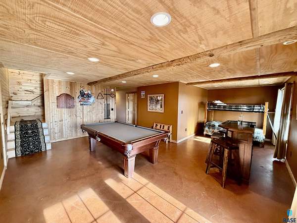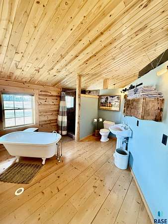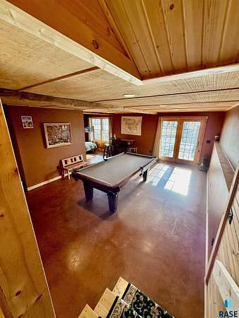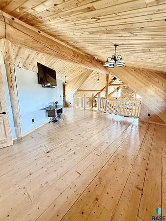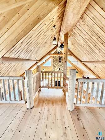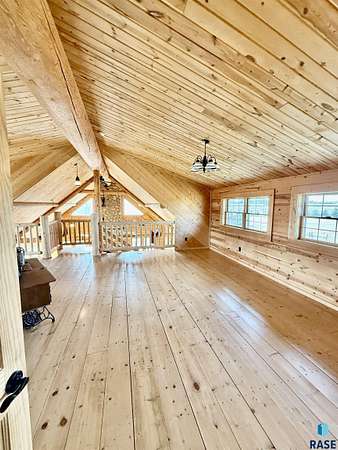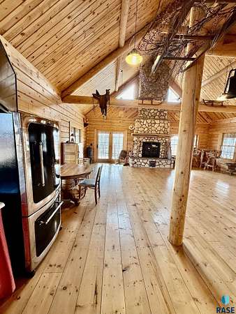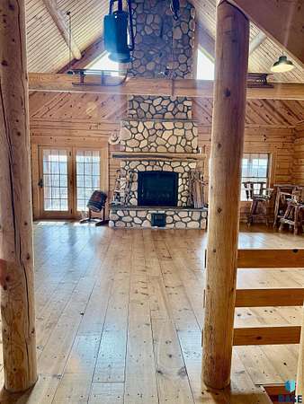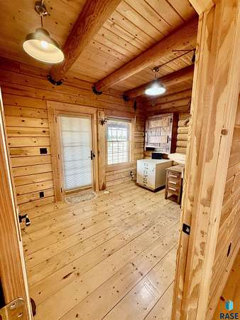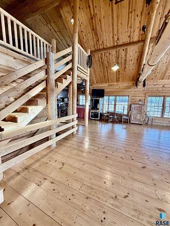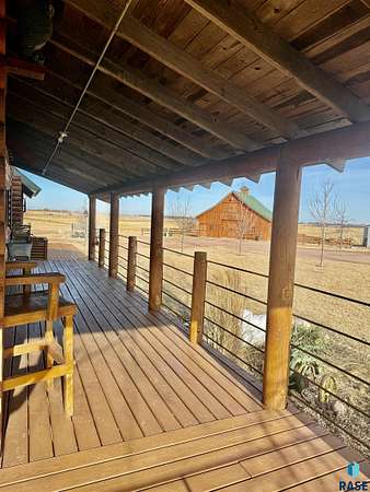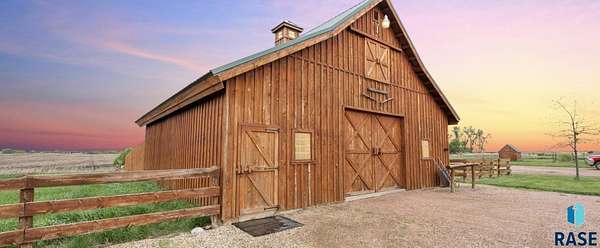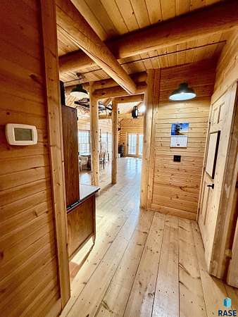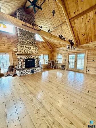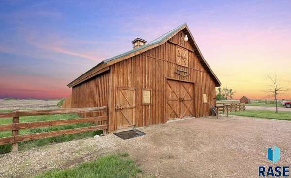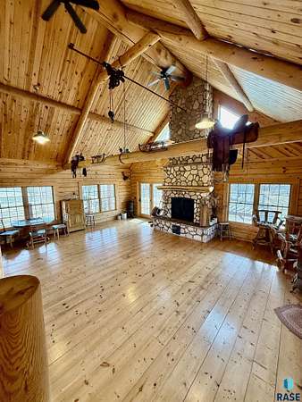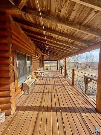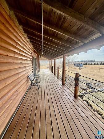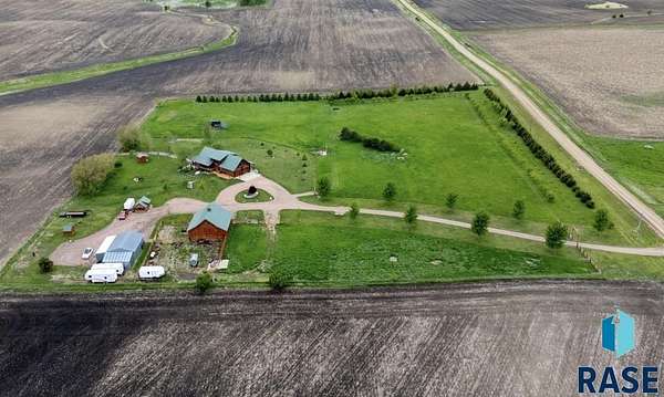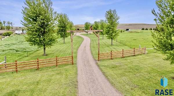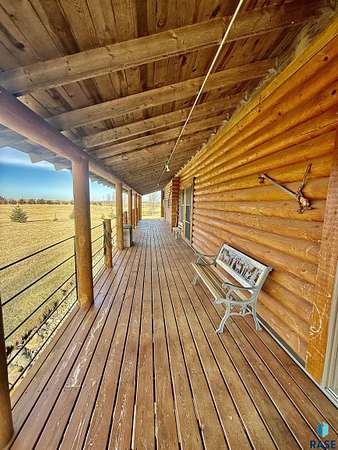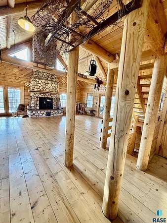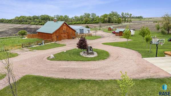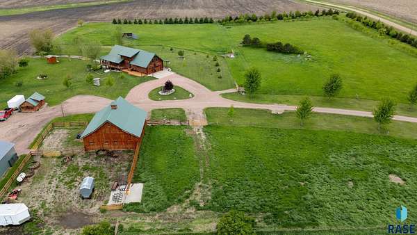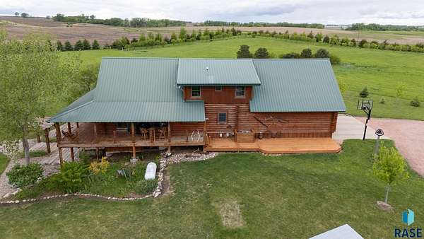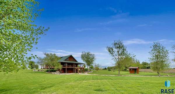 If you've always imagined owning a log home, this stunning property may be the perfect fit. This spacious three-story, four-bedroom home showcases quality D-log construction and Anderson windows throughout. Inside, you'll find three separate living areas, a dramatic floor-to-ceiling stone fireplace with a gas insert on the main level, original wood plank floors, and timeless details like a classic clawfoot tub and vintage-style sinks. The primary suite features a modern tiled walk-in shower, while heated floors in both the garage and lower level provide year-round comfort. A walk-out basement with a recreation room and abundant storage completes the interior. Outdoor living shines with a wraparound covered porch plus upper and lower decks accented by a pergola. Set on a picturesque 10-acre parcel just 20 minutes from Sioux Falls, the property is well-equipped for country living. Outbuildings include a matching workshop, a post-and-beam barn with a tack room, a spacious enclosed machine shed, a garden shed, and a horse shelter. Three fenced pastures with four-wire electric fencing and heated waterers make this an exceptional horse property ready to enjoy. Whether you are looking for a home to roam, a country setting event venue or a piece of land to embrace your lifestyle, this rare find offers endless possibilities.