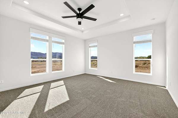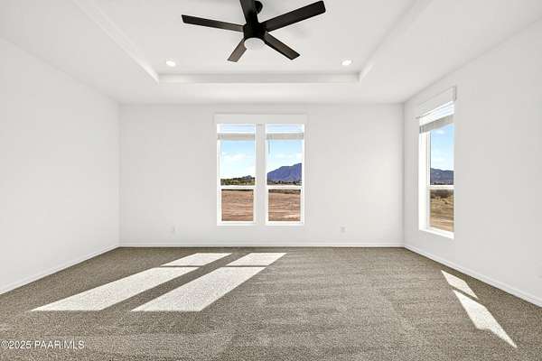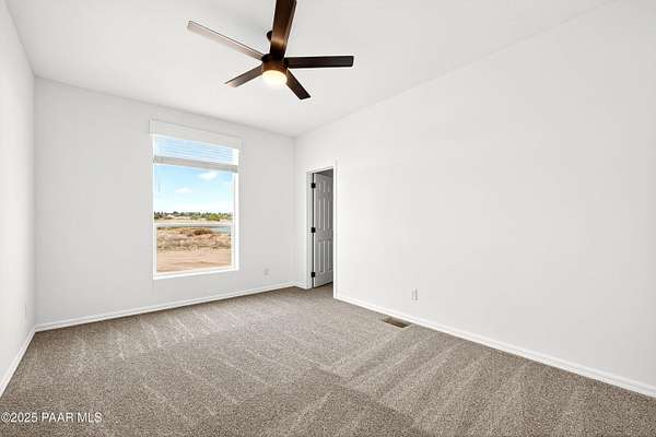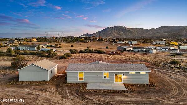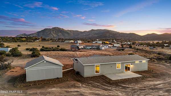 Discover the perfect blend of rugged high-country beauty and modern comfort. Set on 3 sprawling acres, this newly built home delivers unobstructed views of Granite Mountain in Prescott's highly desired Williamson Valley area. Wake up to brilliant sunrises over the peaks and unwind on evenings filled with starlit skies and cool breezes.Inside, the open-concept living space features expansive windows that showcase the mountain backdrop from every angle. A gourmet kitchen anchors the heart of the home with a large island, upgraded cabinetry, and modern stainless-steel appliances. The adjoining great room is warm and inviting with abundant natural light and space to entertain.The split floor plan includes 3 generously sized bedrooms and 2 full baths, including a sophisticated owner's suite complete with a spa-style bath, dual vanities, and a spacious walk-in closet.Complete with a 576 square foot detached garage, there's plenty more room to build your dream workshop, RV garage, or horse amenities. Enjoy the tranquility of rural living while still being minutes from downtown Prescott's shopping, dining, and historic charm.