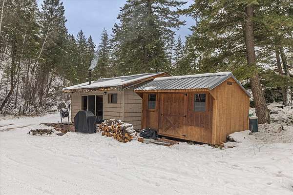 Escape to the quiet simplicity of Montana's high country with this serene mountain acreage tucked along the Canadian border. Set amidst rolling hills, dramatic canyon walls and towering rock outcroppings, this property offers unmatched privacy and a front-row seat to an incredible wildlife corridor-home to herds of roaming bighorn sheep, elk and deer. A simple cabin sits on a full poured concrete foundation and is outfitted for year-round off-grid living. It features a new deck, 50 gallons of water storage and three 1500W lithium batteries with inverter, powered by solar in the summer and by generator in the winter. A 9000W generator powers the well, while a smaller generator powers the cabin as needed. Inside, enjoy the warmth of a wood stove or the propane wall heater, plus a propane stovetop for cooking, a microwave and a versatile refrigerator that can run on propane, electricity or a 12V battery. An adjacent shed adds convenience for overflow storage as needed. The 6 acres of land itself is a rare treasure. An established private drive winds through impressive rock formations and opens into tranquil meadows and level building sites-perfect spots to watch the sheep play or to construct your dream home. A well is already drilled, with septic approval and power/septic estimates in hand to make your planning simple. Located just minutes from lakes, rivers and miles of hiking trails, this property provides endless recreation and a complete escape. Whether you choose to enjoy the existing cabin as a peaceful retreat or use it as an outbuilding while you build something larger, this setting offers the quiet freedom and big-sky beauty Montana is known for.