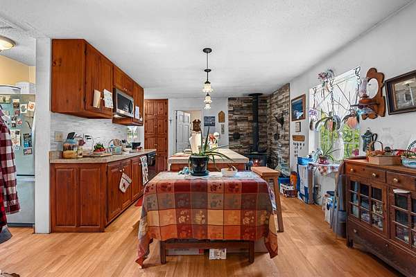 Est $2,545/mo39.09 acres w/the Big Roche Cri River running through--trout fishing & no waterfront taxes. Ownership includes acreage less 5' each side of creek, w/bridge agreement & 2 private bridges. 3BR/1BA home on crawl space, rebuilt in 2012 from studs w/2x6 walls, fully insulated, rewired & replumbed. Open-concept layout w/pantry, propane FA heat & woodstove backup. 26' Sandpoint well & mound system. Former horse farm w/multiple outbuildings--some usable, others barnwood salvage. Trails, food plots (1+ acre + micros), apple/maple trees, feeder creek. Machine shed w/220v. Cleanup needed but incredible potential. Near Sand Valley Golf, Rome lakes, Dyracuse Rec Park & Wisconsin Rapids.