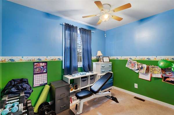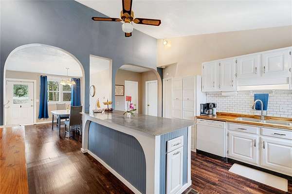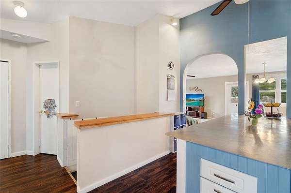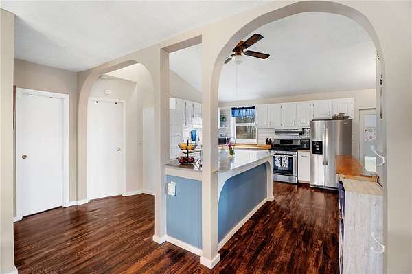 - Bedroom On Main Level, Breakfast Bar, Cathedral Ceilings, Ceiling Fans, Main Level Primary, Separate Formal Living Room