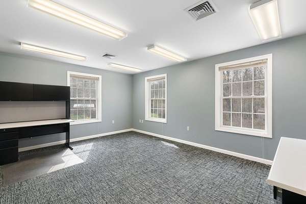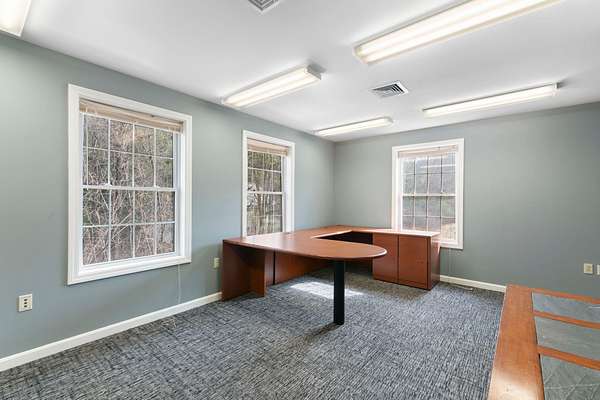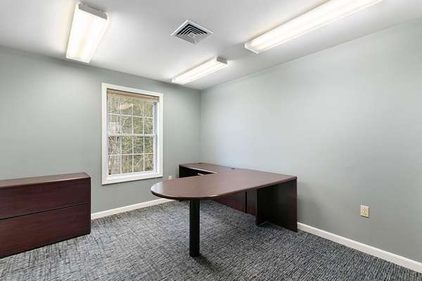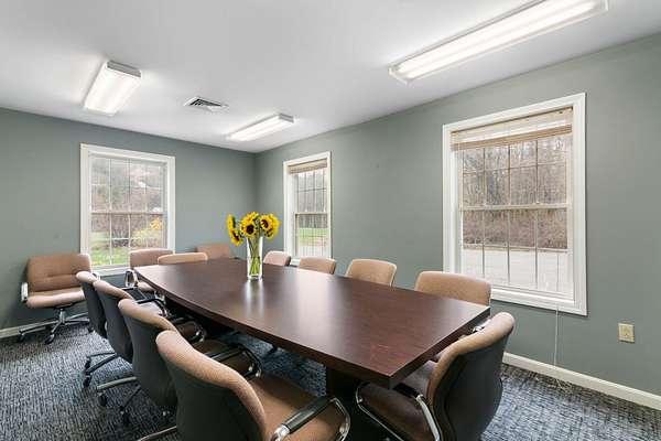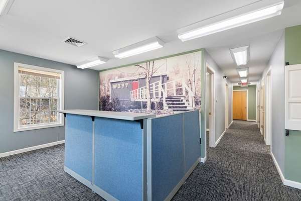 Located just minutes from I-91 and downtown Brattleboro, the former WKVT radio station offers a unique opportunity to own a well maintained commercial property. Tucked into a quiet neighborhood with close proximity to the activity of Western Avenue, this 3,240 SF building strikes an ideal balance between accessibility and privacy, making it well-suited for a variety of professional, creative, or service-based uses. The two-level layout provides flexibility and functionality. The upper level features five private offices, multiple storage areas and closets, two bathrooms, a welcoming entry/reception area, and a kitchenette making it well suited for a range of uses including administrative operations or client-facing businesses. The lower level, previously home to radio station operations, includes five additional offices along with a bathroom, utility room, and storage space, offering potential for collaborative workspace, production, or specialized use. Constructed in 2003, the building benefits from modern systems including central A/C, public water and sewer, high-speed internet availability, and a standby generator system to support continuous operations. On-site parking adds convenience for both staff and visitors. Set on a 4.3-acre parcel with frontage on Whetstone Brook, the property offers a natural, attractive setting rarely found with commercial properties. The building is positioned above the brook, providing a sense of separation and privacy while remaining close to major routes and downtown amenities. A strong option for businesses seeking a move-in-ready location with room to grow in Southern Vermont.