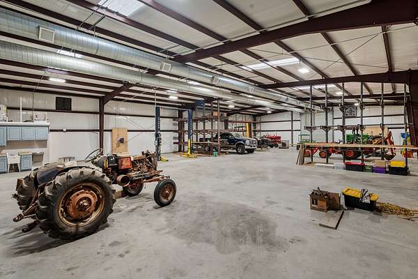 *Unicorn Alert* Rare Find for the Car Enthusiast or someone with Lots of Toys! This beautiful Colonial Home on 5 acres was originally built by Bill Hunter. Attached 2 Car Garage. Detached Brick 5 Car Garage With Apartment/ Kitchen and Full Bath! Follow the driveway all the way to the back of the property to find the 6,000 sq ft WORKSHOP with 16 ft side walls and 14 ft tall doors and 10,000 lb lift. Workshop is set up to build cars but could also be a great Recording Studio and contains a full bath and kitchenette. 20x20 garage in back as well can fit 2 cars. Inside the home you will find so much detail with crown moulding throughout. Gorgeous hardwood floors throughout the main floor. Brand new chandelier at entry. Primary Suite has a separate 8x12 sitting room inside. Coffered ceilings in Kitchen as well as the Den/Office. Bonus Room over garage could also be a Mother in Law suite as there is a built in kitchenette and full bathroom. Fresh paint throughout. Too many details here to list. This one is a MUST SEE!! Preferred Lender, Marshall Parsons with CMG Home Loans, to credit buyer 1% toward buyer closing cost at closing.