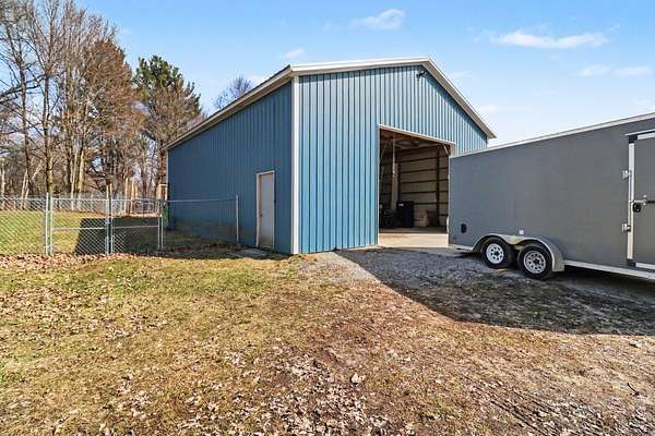 Welcome to your private country retreat on 14.40 acres! This spacious 4-bedroom, 2-bath home offers a functional layout with a main floor master suite featuring a walk-in closet and full bath, plus an additional main floor bedroom with walk-in closet. The main floor also features a large foyer (bonus room) with an oversized walk-in closet/pantry, along with a spacious living room, generous dining area, and updated kitchen--perfect for everyday living and entertaining. Convenient main floor laundry and all appliances are included. The finished walkout lower level offers 2 additional bedrooms and a large unfinished space ready for storage or your personal touch. Additional features include central air, new windows, reverse osmosis system, and a 2-stall attached garage. Outdoors, you'll love the 36x40 pole barn and the abundance of wildlife including deer, turkeys, and ducks. A perfect blend of space, comfort, and country living! Call today! Buyer and Buyers agent to verify all info.