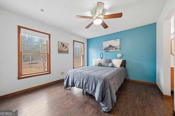 Tucked away on five private acres in Douglas County, this property offers a rare blend of space, serenity, and everyday convenience, neighboring both Alexander High School and Bill Arp Elementary and close to the shopping and dining you rely on. Welcome to 4581 Cougar Trail. A generous setback from the road, two gentle streams bordering two sides of the property, a tried-and-true chicken coop (fresh eggs included upon visiting!), and the quiet of the surrounding forest create a peaceful retreat that's increasingly hard to find. Whether you envision morning coffee overlooking the woods, space for gardening or recreation, hammocking by the water, or simply room to breathe, the land itself is one of this property's most compelling features. The home is a classic build with approximately 3,000 square feet. Inside are four spacious bedrooms, including an oversized primary suite that feels like a true retreat, along with three and a half bathrooms and an open-concept main living area that makes everyday living and entertaining easy. The main level also includes a dedicated office and laundry room, while the nearly 1,000-square-foot basement is ready for your vision. Since 2023, the property has seen several updates and improvements, giving the next owner a strong head start while still leaving room to personalize and add value. Properties with this kind of acreage, privacy, and potential rarely come along this close to everyday conveniences. If you've been searching for space and long-term opportunity, 4581 Cougar Trail is worth seeing in person.