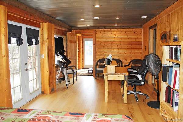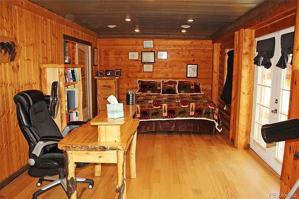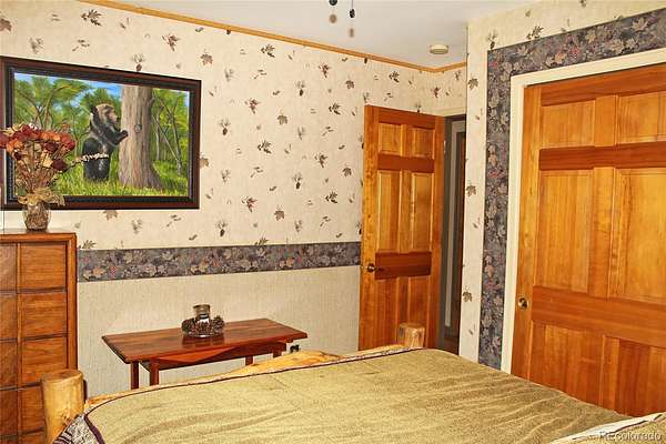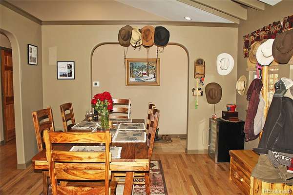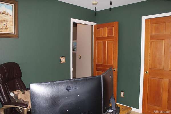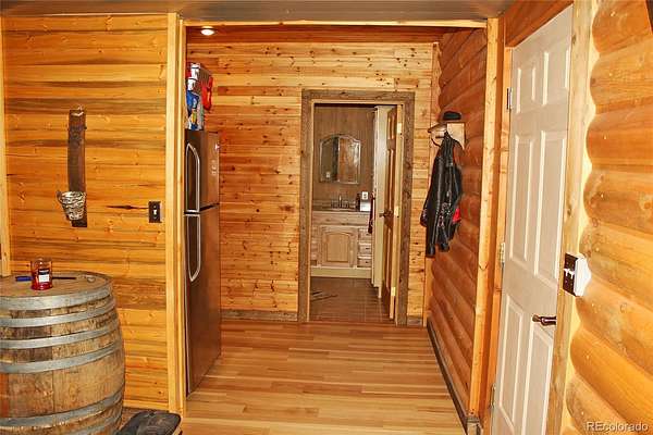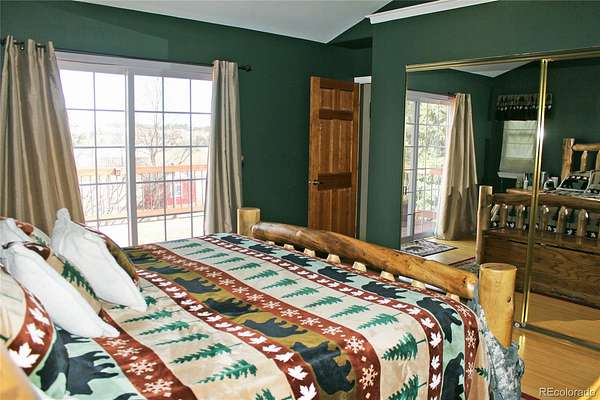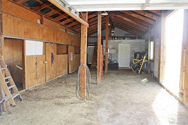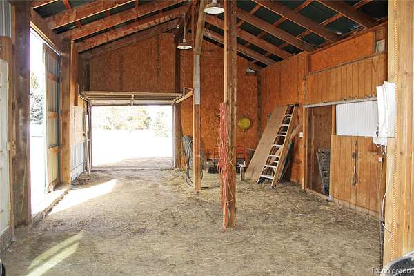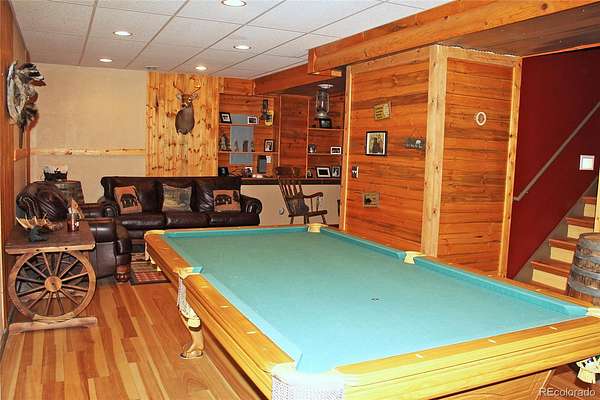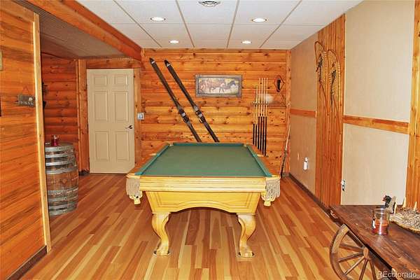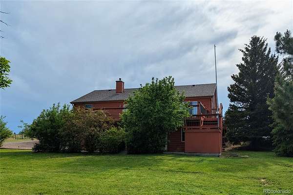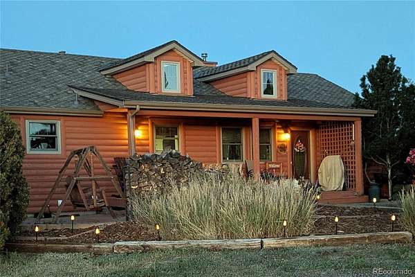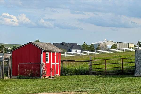 This charming, private ranch with a walk-out basement located on 8.55 acres has tons of upgrades! The entire property is fenced in and includes a barn, chicken coop, and dog kennel/garden shed, plus mineral rights and oil and gas royalties. Come home to the welcoming front porch with views of Mt. Evans and Longs Peak. Step through the front door onto the wood floors that have been buffed and polished and appreciate the new paint throughout. Relax by the beautiful, stone gas fireplace with a hand-crafted wood mantel in the comfortable living room that opens to the updated deck with solar lighting. Share meals in the spacious eat-in kitchen with Maple cabinets, a center island, two sinks, newer appliances, updated recessed lighting and skylights. Retreat to the spacious master bedroom that opens to the deck and includes a completely remodeled bath with a shower, jetted tub and granite counters with a stainless steel under mount sink. Remodeled guest bath too. Entertain in the fully finished and remodeled basement with a large rec room that includes a pool table and built-in bookshelves, an office/workout room, an indoor hot tub room with a new hot tub, and a remodeled bath, plus all new flooring and newer ceiling panels. New doors and windows by Anderson. New HVAC system, exterior stain and trim paint, 50-year roof with vents, sprinkler system, solar LiftMaster entrance gate with keypads and gate openers, fiber optic internet and more!