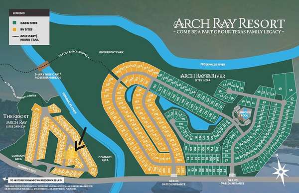 Premium River-Backing RV Lot at Arch Ray Resort in Fredericksburg, Texas. Welcome to Site #266, a rare opportunity to own a luxury RV site backing directly to the Pedernales River in the heart of Texas Hill Country wine country. This desirable lot offers peaceful river views and a natural backdrop, creating the perfect setting for your private RV retreat. Arch Ray Resort combines the charm of Fredericksburg with resort-style ownership. Owners enjoy convenient access to the on-site winery, brewery, restaurant, and live entertainment while being just minutes from downtown Fredericksburg's shopping, dining, and world-renowned wineries. Site #266 provides an ideal setting for outdoor living, entertaining, or relaxing along the river while enjoying the Hill Country lifestyle. Whether you are seeking a weekend getaway, full-time RV destination, or an investment property in one of Fredericksburg's most exciting resort communities, this river-backing RV site offers a unique opportunity. Experience the best of Fredericksburg resort living at Arch Ray.
