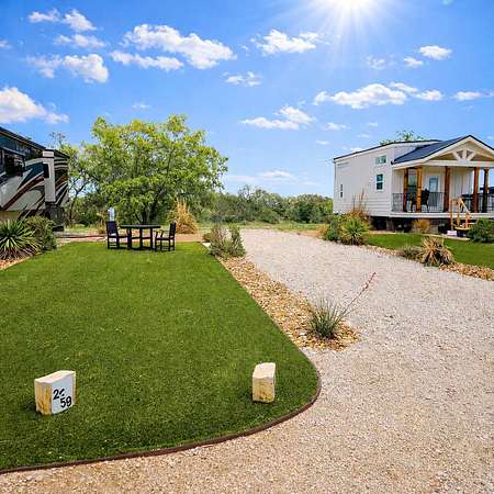 Welcome to your own slice of the Texas Hill Country at Site 259 in Arch Ray RV Resort, a rare opportunity to own a premium river-backing RV site along the beautiful Pedernales River. This highly desirable back-in site offers both privacy and breathtaking natural surroundings, creating the perfect setting for a relaxing getaway, full-time RV living, or investment property. Imagine stepping out of your RV to enjoy peaceful river views, mature trees, and the tranquil sounds of nature-this is the lifestyle buyers are searching for in Fredericksburg. Designed to accommodate RV units up to 45 feet, this site is fully set up and ready for immediate use. Whether you're looking to enjoy it personally or place it into the resort's rental program, this property offers flexibility and strong appeal. Located within Arch Ray RV Resort, owners enjoy proximity to Fredericksburg's renowned wineries, shopping, and dining, along with on-site attractions including a restaurant, winery, brewery, distillery, and live music venue-creating a true destination experience for both owners and guests. This is one of the few opportunities to secure a river-adjacent site in a rapidly growing resort community-don't miss your chance to own one of the most desirable locations in Arch Ray.