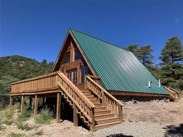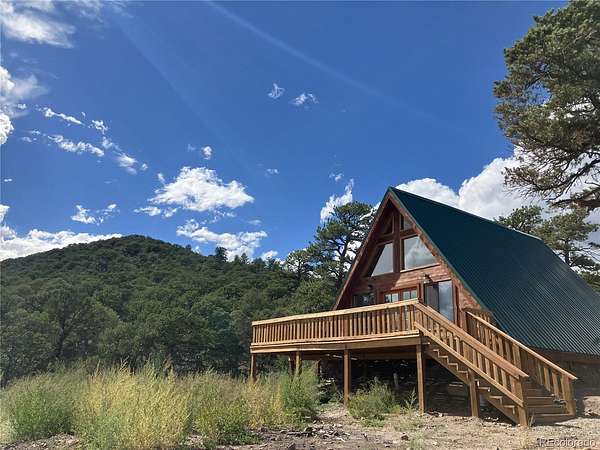 Beautifully finished new custom cabin (2025) on 5.26 acres awaits you in the picturesque Sangre de Cristo range of the Rocky Mountains. This year-round mountain home features tongue-in-groove vaulted ceilings, an open floor-plan, and southern exposure for passive solar warmth. The cabin is mostly off-grid, using a very efficient Rinnai propane wall heater, tankless water heater, and back-up auto-on whole-house propane generator. Underground high-speed fiber optic internet was recently installed at the property, providing your internet connection to the outside world. Work from home with no interruptions, using the upstairs loft with a second (non-conforming) bedroom that doubles as an office or studio. Year-round access on County maintained roads and rare snowfalls over a few inches make this a perfect place to live full-time. Enjoy the peace and quiet, regular wildlife sightings, a delightfully cool summer escape from the heat, and a cozy winter retreat. Soak up the sun from the spacious deck while gazing upon near and distant mountains and planning your fishing trip to nearby Mountain Home Lake, Taos, NM, or the Great Sand Dunes National Park. Property has a recent survey. A must see! GPS: 37.4835,-105.3118