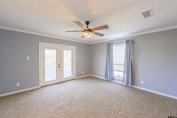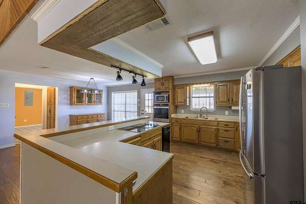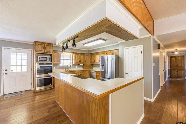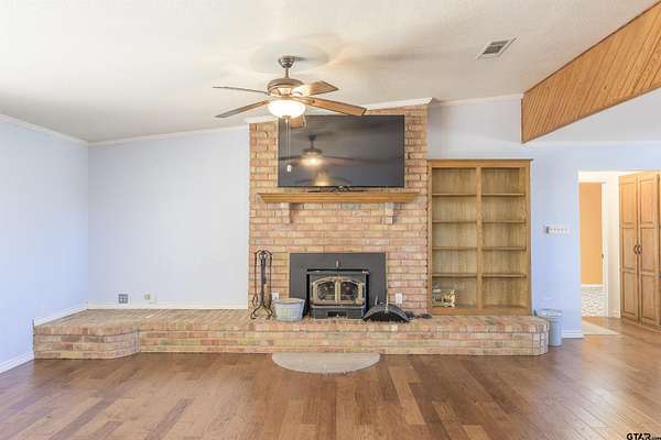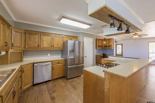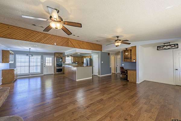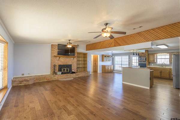 Welcome home! This ranch style home offers an exceptional blend of country living and modern comfort. Sprawled across more than 20 acres, the property boasts an impressive amount of road frontage, providing both privacy and easy access. As you step inside, the open living area immediately makes you feel at home. A cozy wood-burning fireplace with a custom hearth is the focal point, perfect for relaxing evenings. The home is filled with custom built-in features, including a stately bookcase, and a practical desk in the office nook, adding both character and functionality. The large kitchen is equipped with a central island and a double oven. Many of the appliances have been recently upgraded, including the dishwasher, stovetop, and kitchen ventilation in 2020, with a newer refrigerator (2022) that will stay with the home. You'll find gorgeous engineered hardwood flooring throughout the kitchen and living areas, creating a seamless and elegant flow. The home also features a huge walk-in laundry room with multiple washer hook-ups and a utility sink, making chores a breeze. The master suite is a true retreat, featuring French doors (added in 2023) that open to the outside, providing a private entrance to the property. The suite also includes his and her vanities and separate closets for ample storage. This home has been well maintained, with significant updates and improvements made in recent years: Roof replaced in 2019 HVAC replaced in 2020 Both water heaters replaced in 2022 Gutters installed in 2022 Garage doors replaced in 2023 Septic tanks pumped in 2023 New paint and trim recently applied The expansive land includes a pond, making it an ideal property for those with animals or anyone who desires a peaceful, rural setting. If you're looking for a comfortable, updated home on a generous amount of acreage, this is a perfect choice.