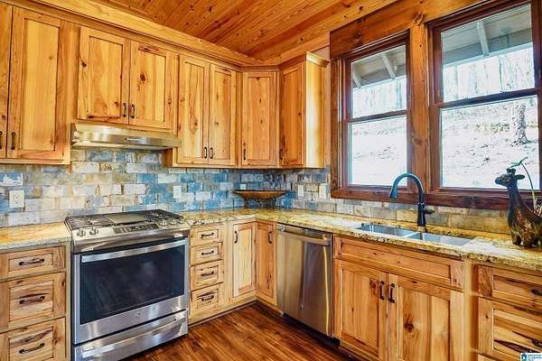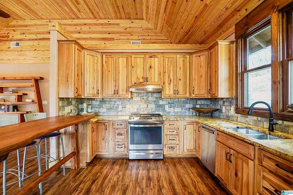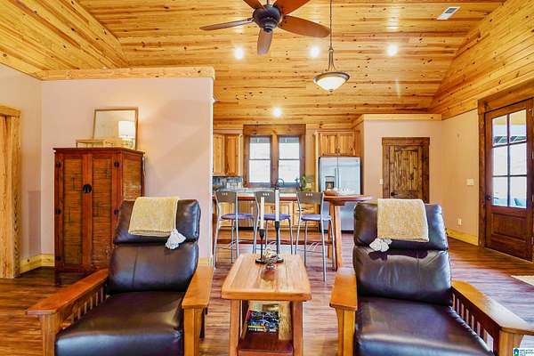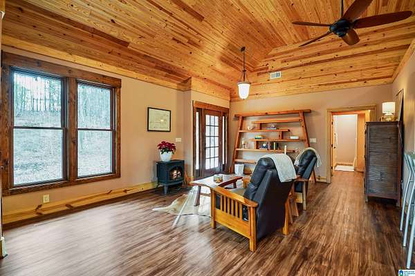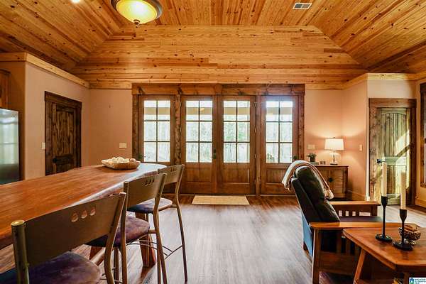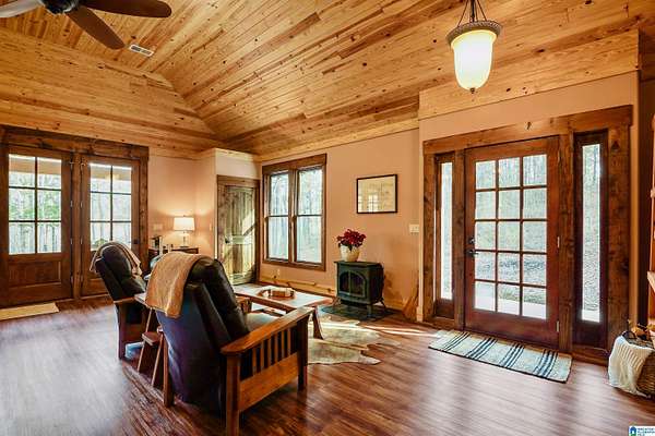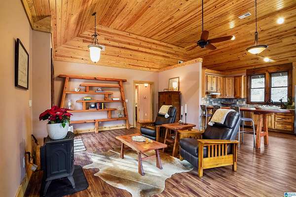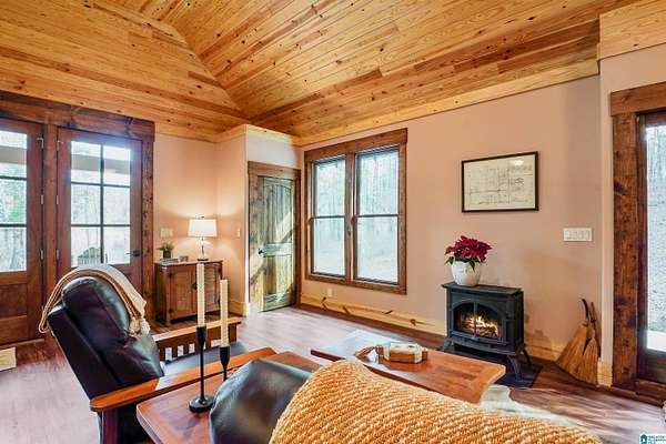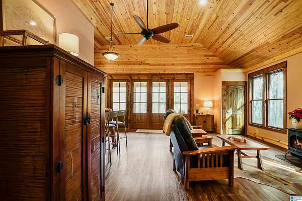 Escape to your own private retreat overlooking a peaceful, wooded lake. Tucked away in a quiet setting, this home blends, rustic charm with modern convenience, offering the perfect getaway or full-time home. Step inside to a warm, 2 bedroom/2 bath, lodge-style interior cottage. Featuring vaulted ceilings, wood floors & fireplace. The kitchen offers beautiful knotty wood cabinetry, stone backsplash, granite counters and large island. Gorgeous doors open to the huge covered porch perfect for relaxing and enjoying the view. Easy walk to the lake for fishing or kayaking. Detached garage perfect for a workshop or storage. This home was built by an artist as a labor of love with a vision of peaceful living. Be sure to checkout the neighborhood common area with dock at the entrance. Open House Sunday 1/18 from 1-3