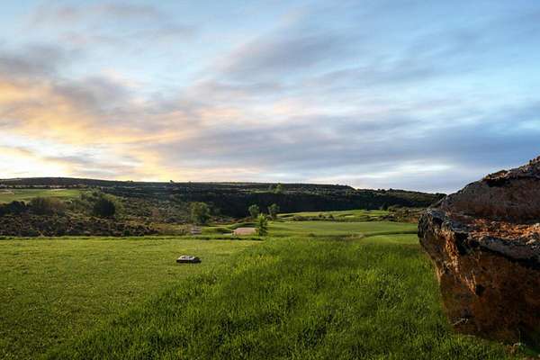 North on Bluff/SR-18, exit at Ledges Pkwy. follow through the roundabout to the left, cross over the hwy. Continue through the guard gate (Silver Cloud Dr.), turn left on Petroglyph Dr. Lot will be on your L.