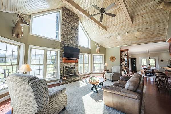 Country Home for Sale with Land in Floyd, Virginia21.739 Acres | Custom Home | Pool | Mini-Farm PotentialExceptional 21.739-acre property offering a well-appointed custom home, functional agricultural improvements, and scenic Blue Ridge Mountain views. Located just off the Blue Ridge Parkway, this property presents an ideal opportunity for a private retreat, mini-farm, or rural homestead.The land is a balanced mix of open pasture and woodland, with portions fenced for livestock. Improvements include a stocked, spring branch–fed pond, apple orchard, multiple garden areas, and extensive infrastructure for animals and self-sufficient living.Custom Home (Built 2009)4 Bedrooms | 3.5 Baths | 4,752 Sq Ft (Two Levels)This handcrafted residence features quality construction with Hardie board siding, stone accents, and a shingle roof. Outdoor living is enhanced by expansive TimberTech decking with cable railings and a screened porch overlooking the pool and surrounding countryside.The main level offers an open floor plan with hardwood and tile flooring, a vaulted great room with gas fireplace and stone surround, and a well-equipped kitchen with updated appliances and bar seating. Two bedrooms and 1.5 baths are located on this level.The lower level includes a large living area, two additional bedrooms, and two full baths. A portion remains unfinished for mechanical systems and storage. Heating systems include solar thermal radiant floor heat, HVAC, and a supplemental gas stove.Additional features include:- 17 solar panels (electric + thermal)- 16kW standby generator (propane)- ADT security system- Private well and septicOutdoor Living & ImprovementsThe property is designed for both recreation and productivity:- In-ground saltwater pool (installed 2020) with concrete decking and fenced lounging area- 4-car detached garage with upper-level workshop, electric, and water- Post and beam barn with run-in shed (metal roof)- Additional run-in shed and fenced pasture areas- Fenced garden space with 4 raised beds and Garden Shed- Chicken and turkey coops- Dedicated fenced dog area- 9 water hydrants strategically placed throughout the property- Outdoor firepit- Stocked 8 ft deep spring fed pond (Hybrid Blue Gill, Large Mouth Bass, and a 7 year old 25lb Grass Carp) with aerator and covered deckLocation & SettingWith frontage on both Franklin Pike and Silver Leaf Lane, the property offers excellent access while maintaining privacy. The setting features long-range views, rolling pasture, and a peaceful rural environment in the heart of Floyd County.For more information about this property for sale, contact Broker Matt Gallimore at (540) 239-2585 or email gallimore.matt@gmail.com.