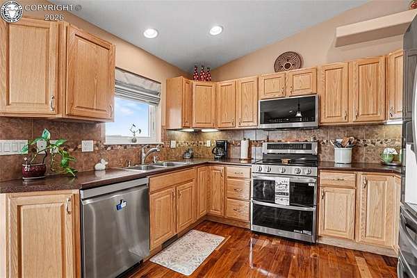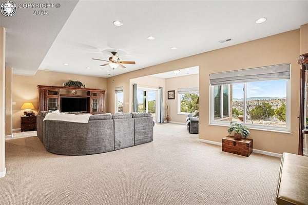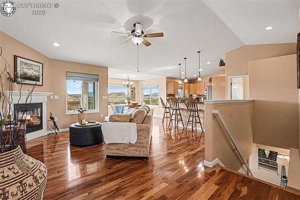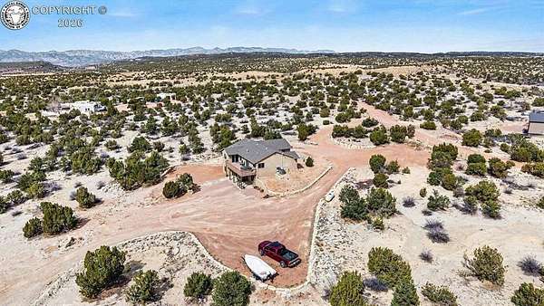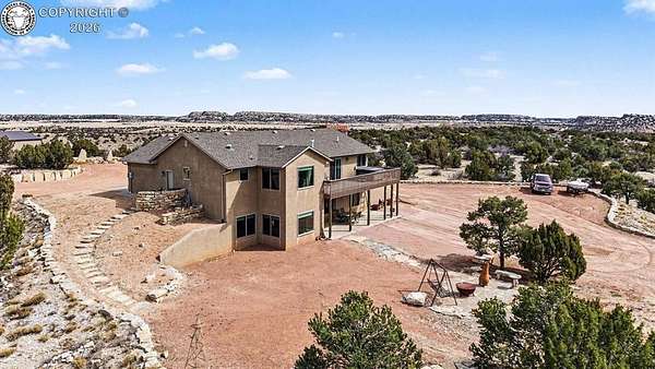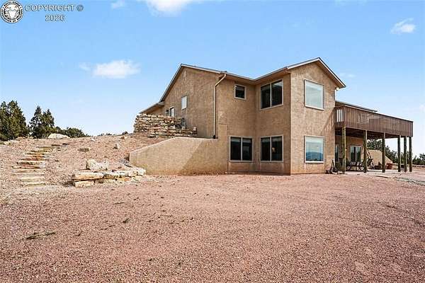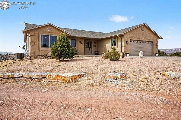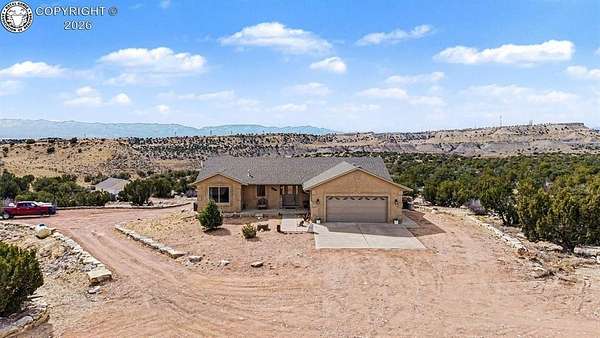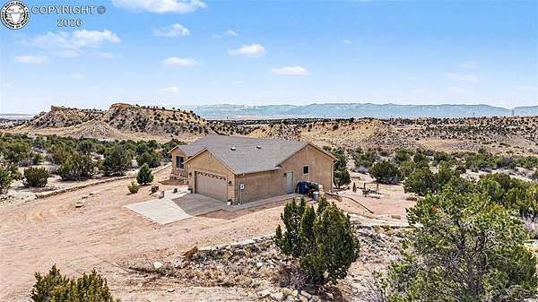 Set on nearly 40 private-acres w/ breathtaking 360 degrees open space views & mountain range vistas, this 4-bedroom, 3-bathhome offers peaceful country living, modern upgrades & equestrian-friendly land, just 38 minutes from ColoradoSprings. The main level features cherry hardwood flooring, vaulted ceilings & cozy gas fireplace. The dining area walksout to Trex deck w/hot tub, perfect for relaxing evenings. The primary suite w/soft carpet & walk out to deck w/hot tub& 5-piece bath showcasing scenic views. Select Blinds Roman shades are installed throughout. The open concept kitchenfeatures LG stainless steel appliances, granite countertops & double self-cleaning oven/range (5 burner cooktop).Thelaundry room includes a stainless steel utility sink w/cabinet, cabinetry, pantry, drying rack & window w/direct accessto the attached OS 2-car garage w/window, service door & 120V/20 amp outlet. The walk-out basement offers a largefamily room w/patio access, 2 bedrooms, a bathroom & spacious mechanical/storage room. Major upgrades include newradon mitigation system, Lennox HVAC w/96% efficiency propane furnace, AC (15.5 SEER), whole-house humidifier,water softener, Renewal by Andersen Fibrex(R) composite windows & patio doors w/transferable warranty, new faucets& new septic. A detached 2-car heated shop/garage offers water, electricity, heat, utility sink & 220V outlet, ideal forprojects/storage. W/a strong-producing well & nearly 37 ac of usable land, this property is equestrian-friendly &perfect for livestock, recreation or enjoying wide-open spaces. Ownership also includes a small percentage interest inRathke Park, a 35-ac. recreation area for dirt bikes, ATVs, motorcycles & other activities. Conveniently located w/easyaccess to Canon City, Pueblo & Colorado Springs, this property offers peaceful Colorado rural living w/modern upgradescompleted.
