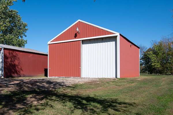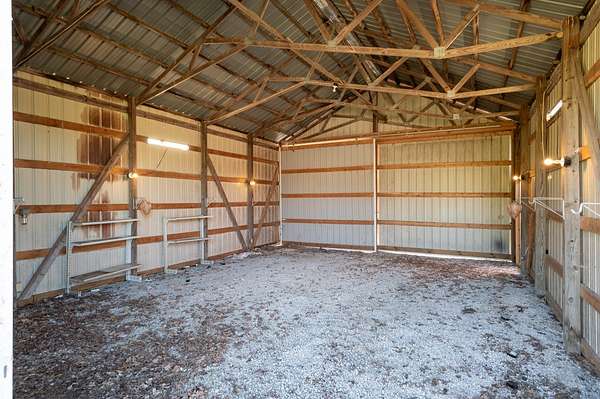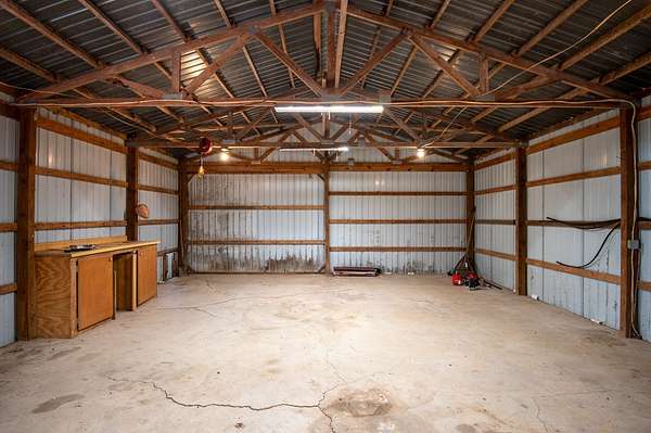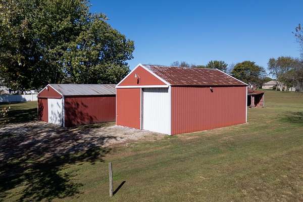 Outside, the land is mostly level and open, suitable for gardening, small livestock, or general outdoor work. There are two metal shops and one older wooden barn, providing space for storage, equipment, or projects. The outbuildings add useful flexibility without overwhelming the landscape.
