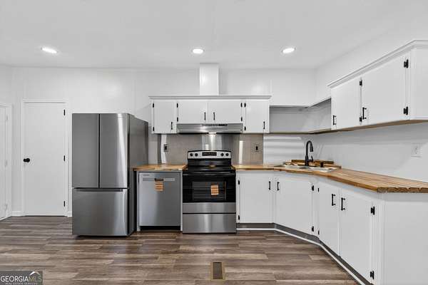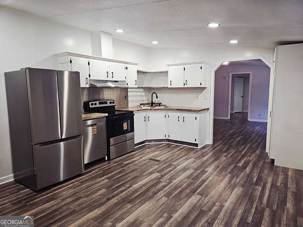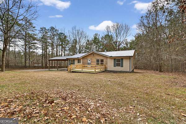 Welcome to this move-in ready manufactured home set on 3+ acres of private, peaceful land just outside Meansville. Offering 1,242 sq ft of living space, this property delivers the perfect balance of country living, functionality, and modern updates. Inside, the home features 3 bedrooms and 2 full bathrooms, fresh interior paint, new flooring throughout, and a comfortable living area complete with a working fireplace. The remodeled kitchen includes butcher block countertops, new stainless steel appliances, ample cabinetry, and direct access from the side carport, making everyday living and unloading groceries a breeze. Outdoor living is enhanced by newly built decks, ideal for relaxing or entertaining while enjoying the surrounding privacy. A workshop with power offers excellent space for storage, hobbies, or projects. The expansive acreage provides room for animals, gardening, recreation, or future improvements. Freshly remodeled and truly move-in ready, this property is ideal for buyers seeking privacy, space, and thoughtful updates in a serene setting.