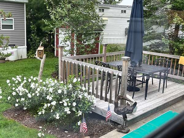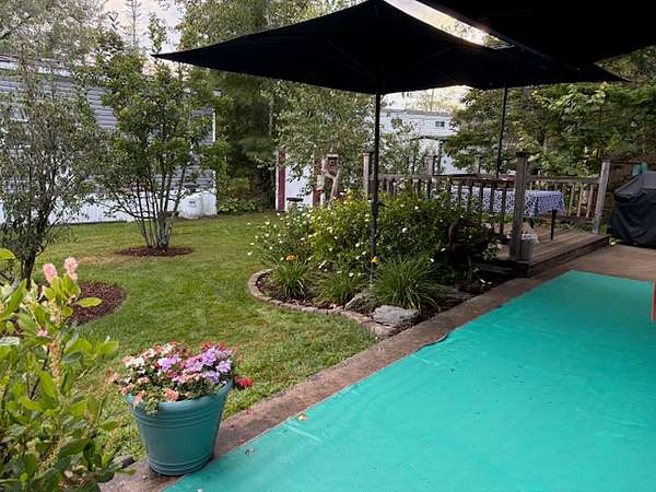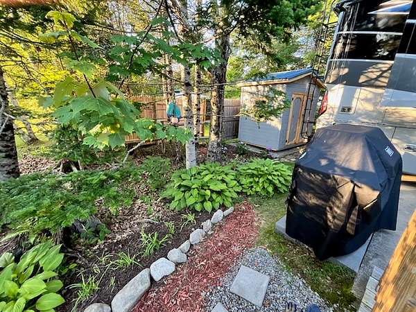 This level 5,000 square foot site features a concrete pad, paver driveway, deck, shed and a wide grassy area. It is equipped with 30/50 amp electric, water and sewer. It is convenient to the clubhouse and amenities as well as washroom and laundry facilities. The lot has extensive landscaping, with perennials for ease of maintenance, blooming throughout the spring, summer and fall. Creating privacy and relaxing outdoor space. The lot includes Weber Gas Grill, Patio Furniture including cushions, Market Umbrellas (2) and misc. garden supplies in the shed. Kayaks are negotiable.