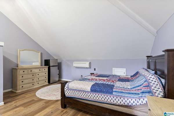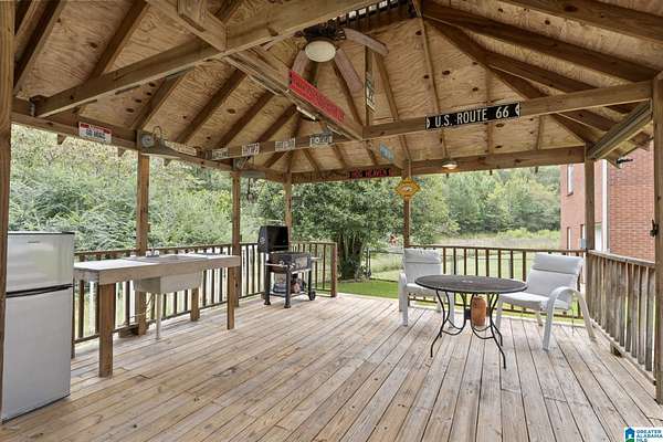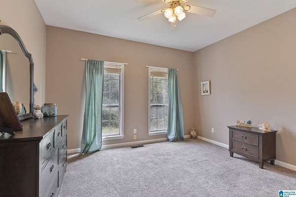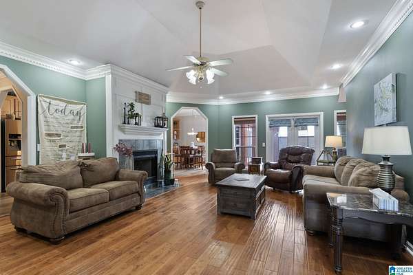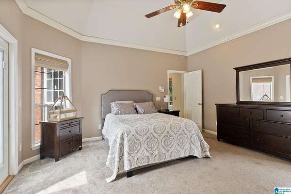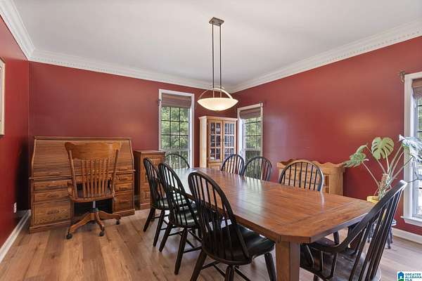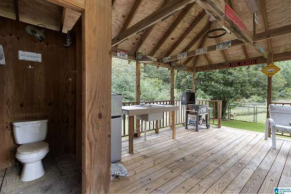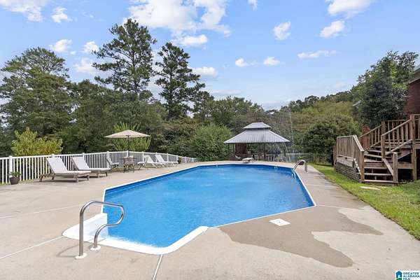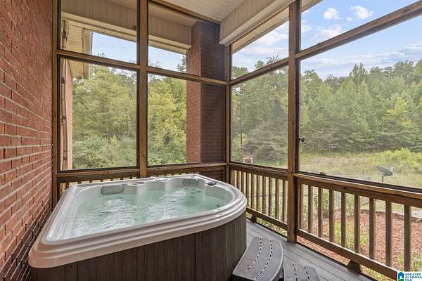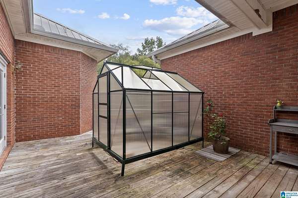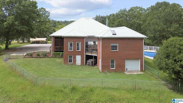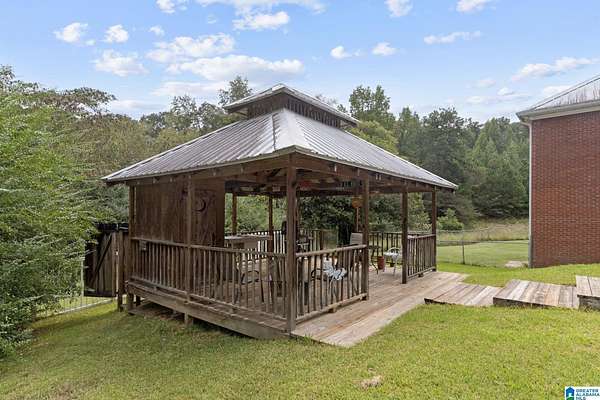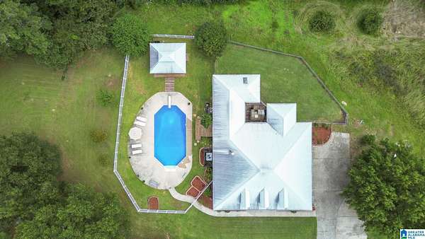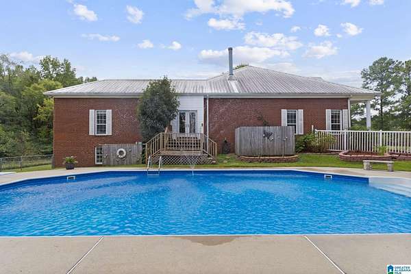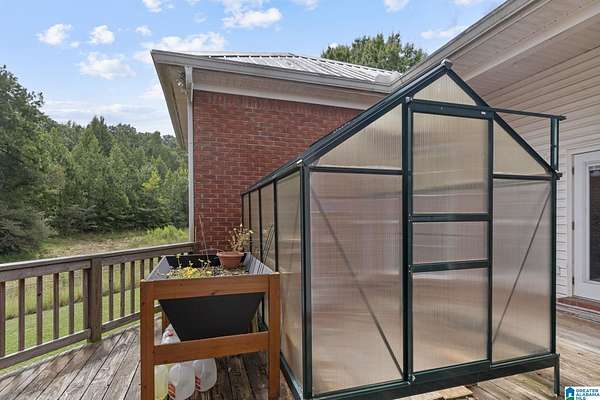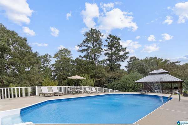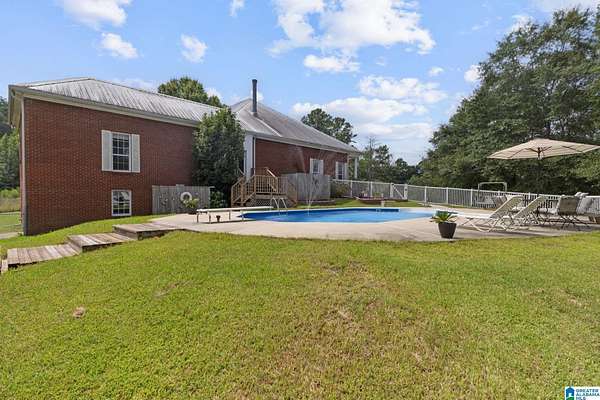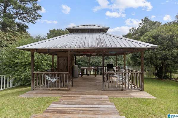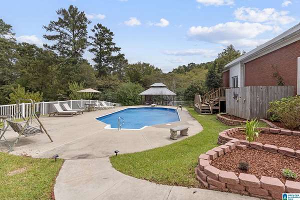 Just MINUTES from I-65 and Lay Lake boat launch, this fully bricked 4BR, 3.5BA home offers TWO master suites and endless room for living, entertaining, and relaxing. Step inside to a welcoming foyer with stairs leading to the upstairs master (built 2021) featuring a clawfoot tub, freestanding faucet, dual-head tiled shower, walk-in closets, and private toilet room. The downstairs master boasts soaring vaulted ceilings, French doors to a fairytale-style Rapunzel deck, wrap-around closet, dual vanities, jetted tub, tiled shower, and water closet. The living room impresses with vaulted ceilings, natural light, and French doors opening to the deck and greenhouse. Two spacious guest rooms share a remodeled bath, with one offering screened porch and hot tub access. The finished basement includes office, laundry, workshop, and covered patio. Outside, host gatherings under the gazebo with toilet, sink, and shower, or enjoy the sparkling pool framed by tropical landscaping and fruit trees.
